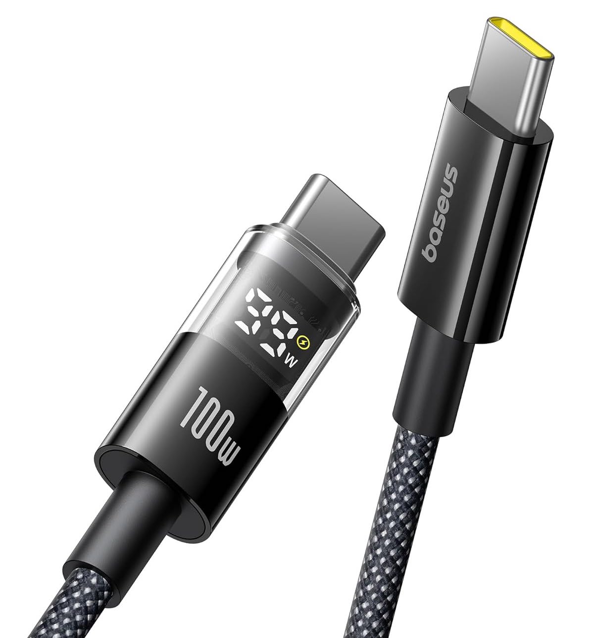 Baseus Kabel USB-C 100 W z wyświetlaczem cyfrowym, 480 Mb/s, w oplocie: 49 zł -> 29 zł