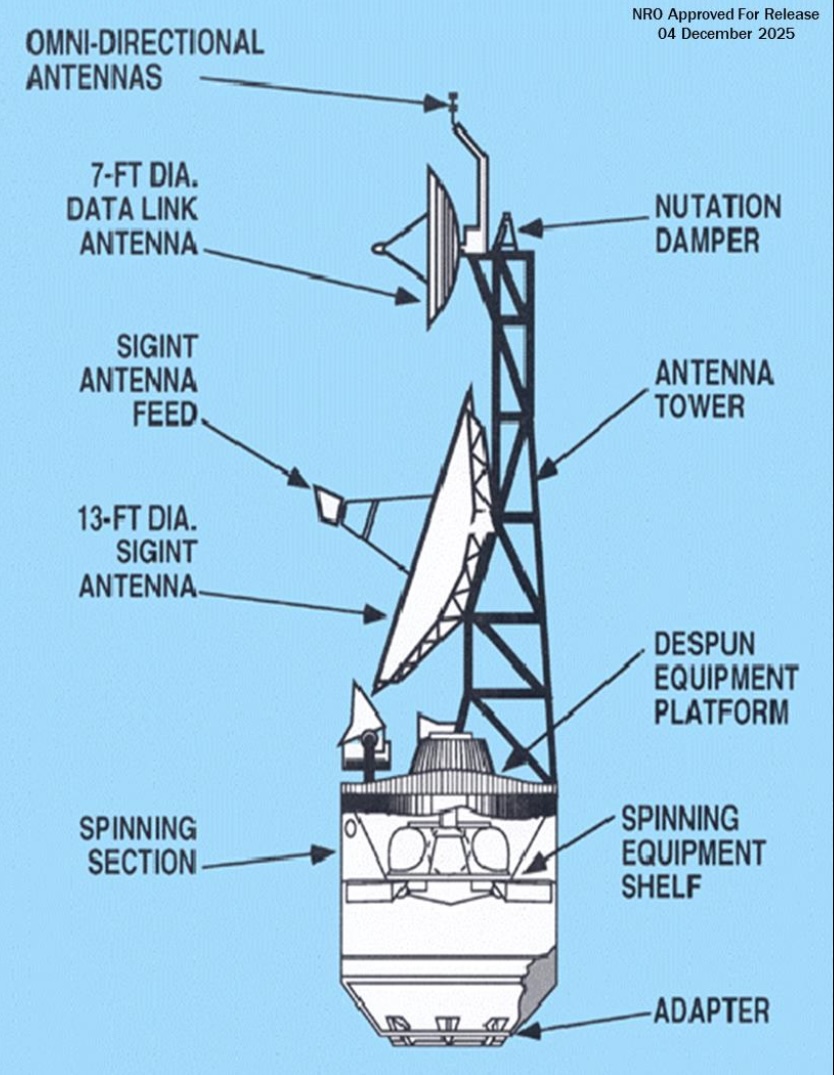 Aby utrzymać stabilność anteny satelita wykorzystywał wirującą sekcję działającą jak żyroskop. Zebrane dane trafiały następnie do analityków NRO, NSA i Departamentu Obrony, gdzie były przetwarzane w informacje wywiadowcze najwyższej wagi.