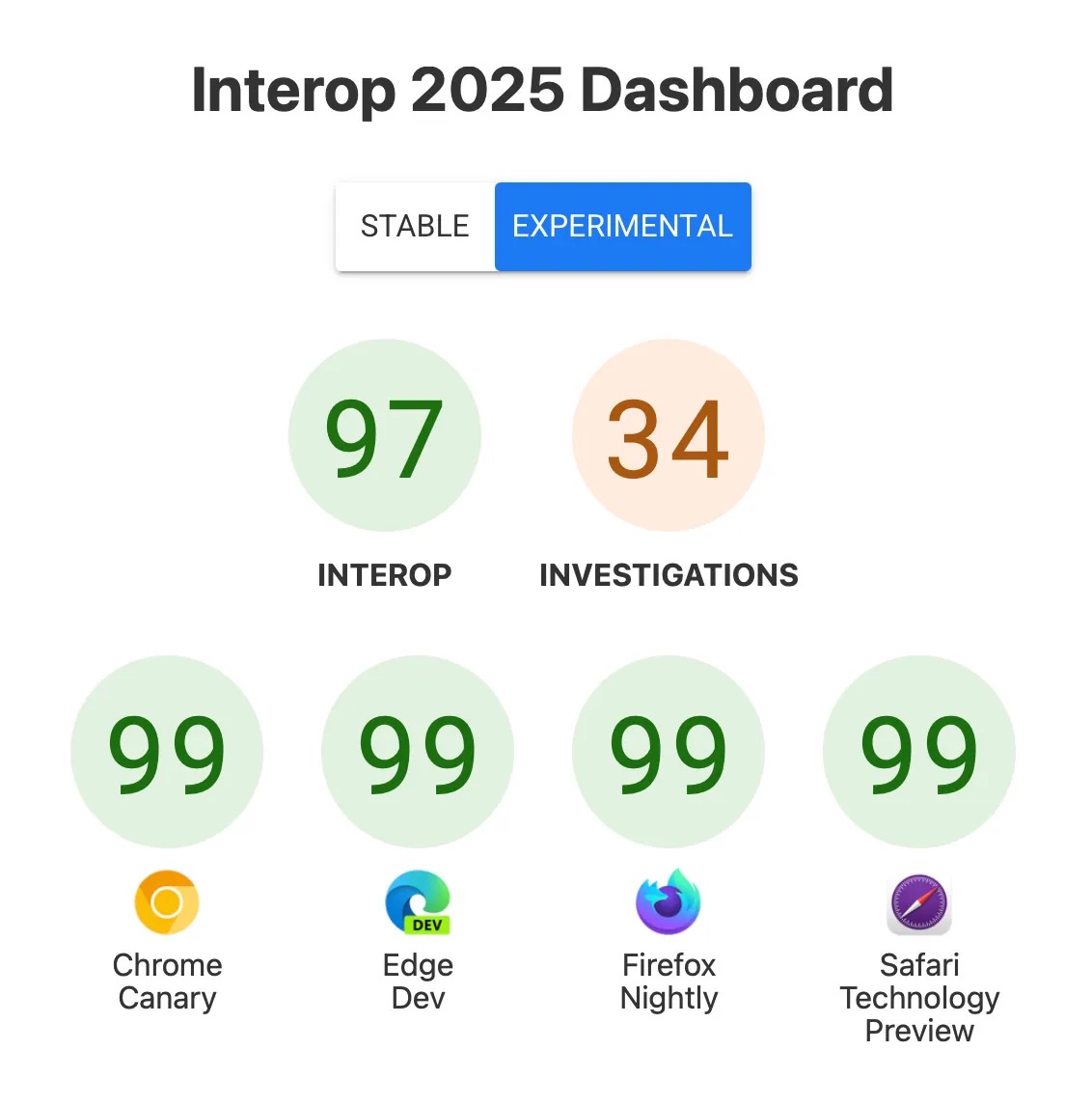 Dzięki współpracy Apple, Google, Microsoft, Mozilla i innych, wskaźnik zgodności testów wzrósł z 29% na początku roku do 97% pod koniec, a Safari zanotowało największy skok – z 43 do 99 punktów.