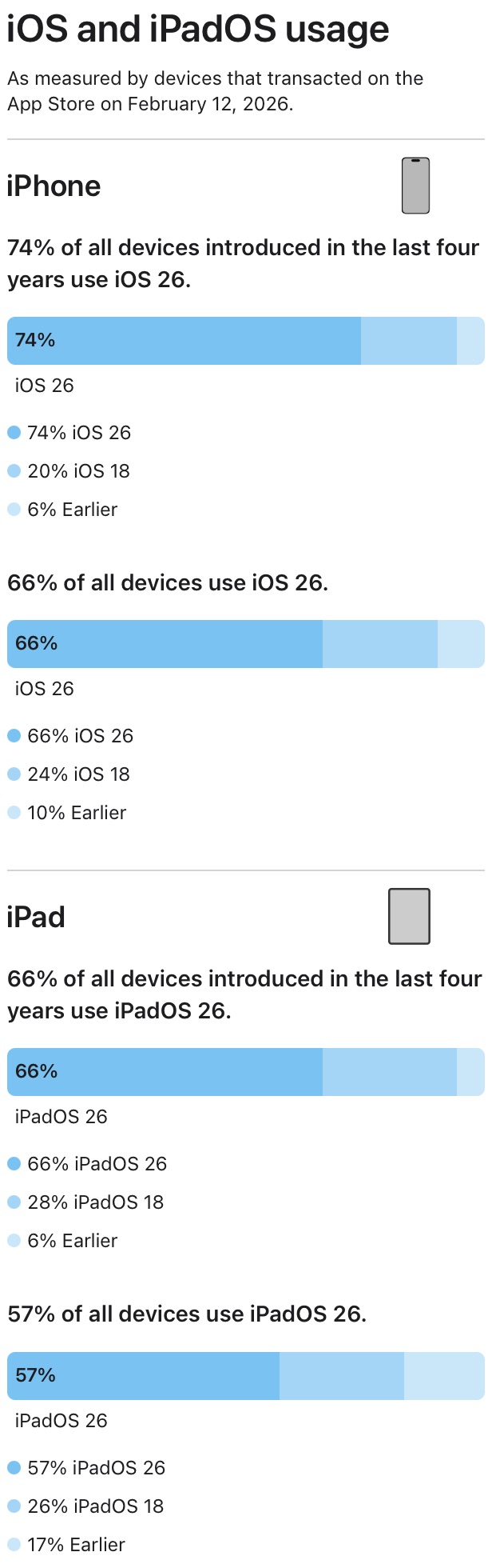Apple opublikowało najnowsze dane dotyczące popularności iOS 26 i iPadOS 26.
