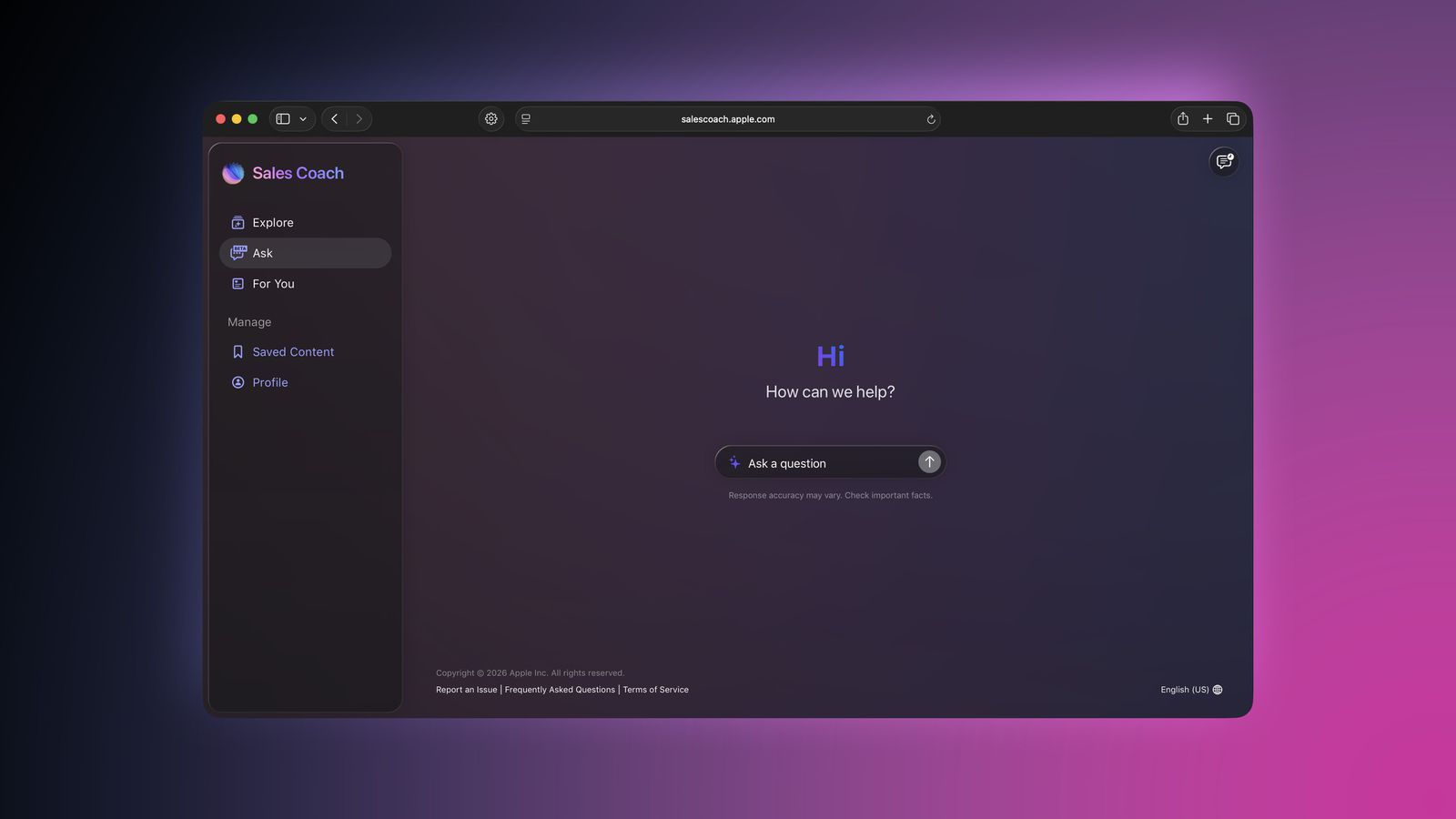 Aplikacja będzie działać również w przeglądarce pod adresem salescoach.apple.com i pozostanie narzędziem wyłącznie wewnętrznym, niedostępnym publicznie.