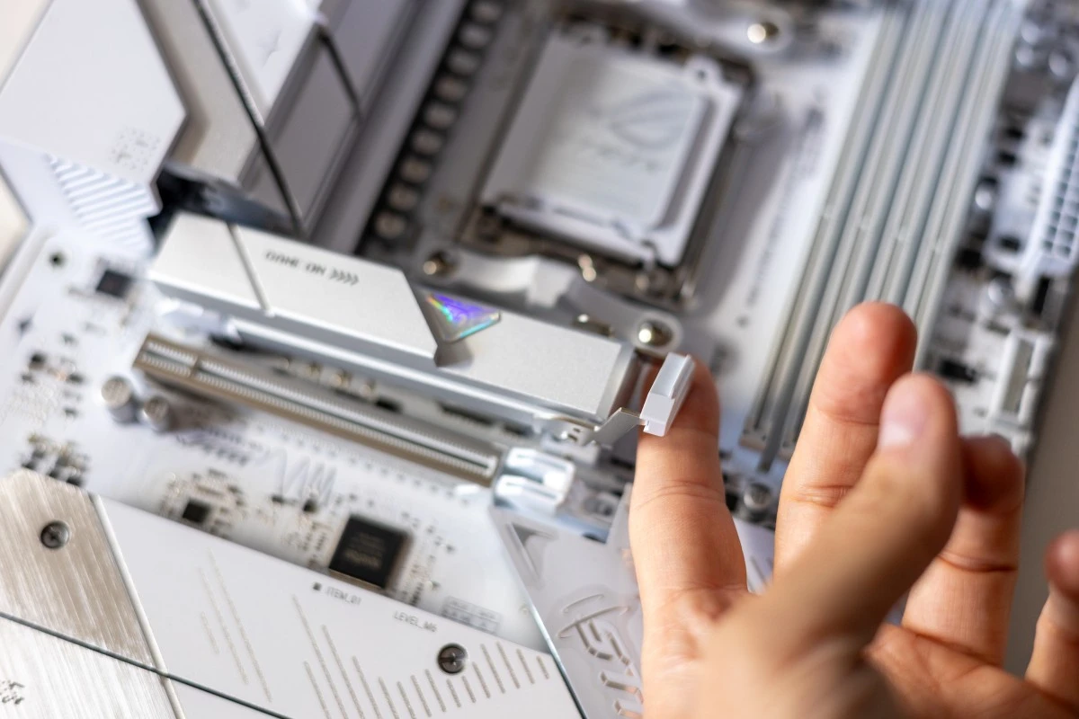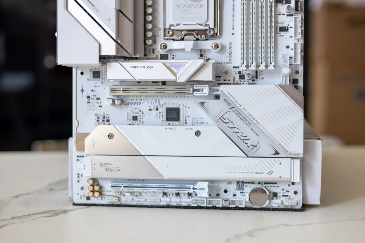 Na szczęście wygląd nie jest tutaj jedyną zaletą. ASUS zadbał też o to, by płyta była zwyczajnie wygodna w codziennym użytkowaniu i na etapie składania komputera. Widać to szczególnie po rozwiązaniach związanych z nośnikami M.2 oraz kartą graficzną. Zamiast klasycznej walki ze śrubkami i zatrzaskami dostajemy zestaw usprawnień w rodzaju M.2 Q-Latch, Q-Slide i Q-Release oraz Q-Release Slim. Technologie uprzyjemniają montaż i demontaż dysków M.2 i GPU.