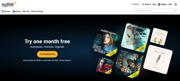 Zasada jego działania może być zaskakująca dla osób, które korzystają z innych streamingów. W ramach miesięcznej opłaty w Audible mamy po prostu możliwość odsłuchania jednego audiobooka + nielimitowane podcasty. w tej chwili są dwa rodzaje abonamentu: w tańszym Audible Standard dostęp do audiobooków mamy tak długo jak płacimy, w droższym Premium Plus pozostają również po rezygnacji.