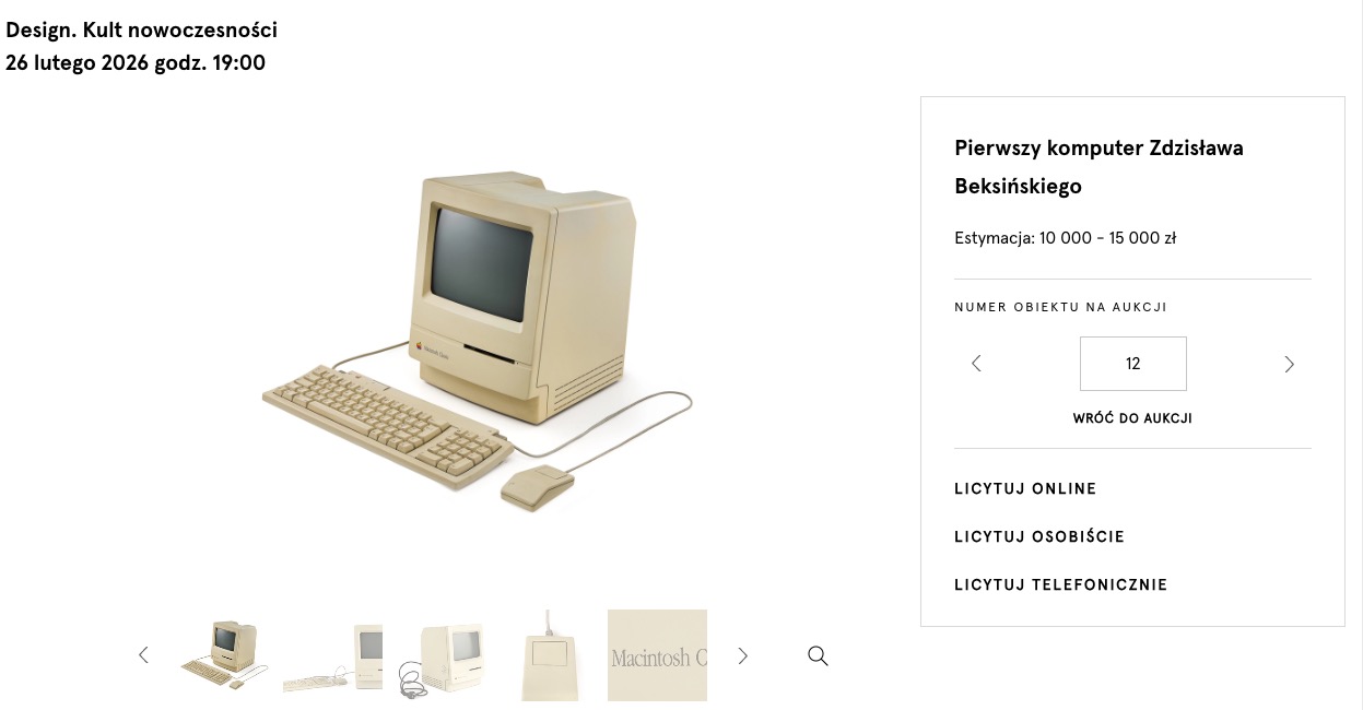 Egzemplarz Macintosha Classic użytkowany przez samego Beksińskiego trafił w ręce domu aukcyjnego Desa Unicum i już w zbliżający się czwartek 26 lutego o godz. 19:00 sprzęt będzie można nabyć na własność. Urządzenie ma działać i ze zdjęć domu aukcyjnego wynika, iż zostało zachowane w naprawdę dobrym stanie.