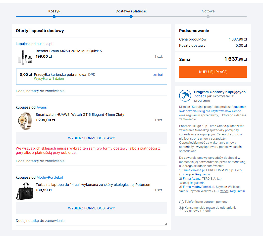 Przykład? Proszę bardzo: załóżmy, iż chcesz kupić nową torbę na laptopa, blender ręczny oraz smartwatch. Zwykle tak szeroki zakres zakupów wymaga zakładania kont na trzech różnych platformach. Dzięki Kup Teraz wszystko możesz dodać do jednego koszyka, zapłacić raz i mieć pewność, iż wszystko zostanie dostarczone bezproblemowo.