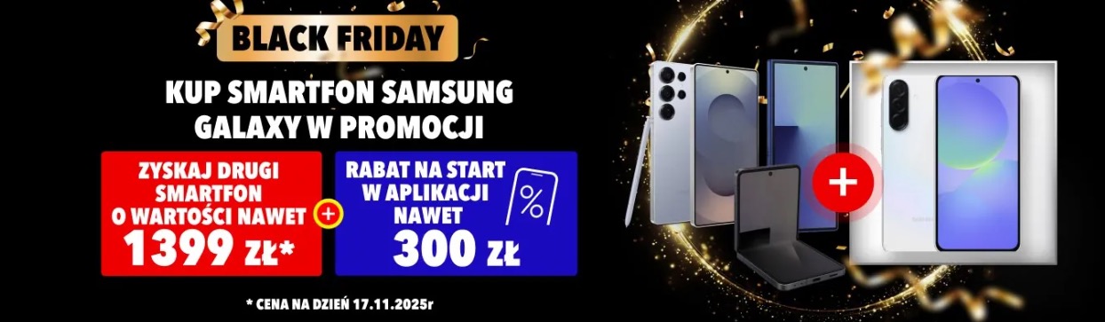 W ramach tegorocznego Black Friday Samsung uruchomił promocję dwa w cenie jednego. Działa to prosto: kupując jeden z wybranych modeli – m.in. Galaxy A56 lub Galaxy A36 – można odebrać drugi telefon gratis. Warunkiem jest zakup urządzenia w jednym ze sklepów objętych akcją (np. Media Expert, MediaMarkt, x-kom).