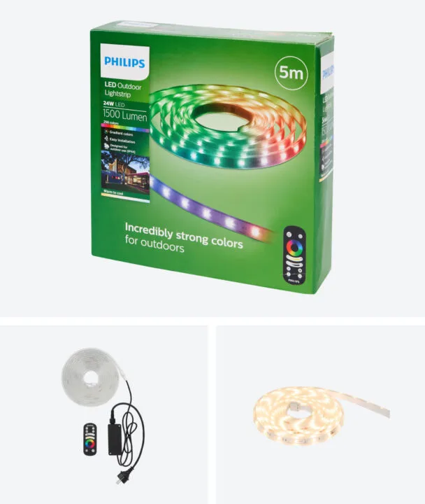 Przeglądając aktualną ofertę tygodnia w sieci sklepów Action, trafiliśmy na prawdziwą perełkę – za naprawdę niewielkie pieniądze dostępna jest taśma LED zewnętrzna Philips o długości 5 metrów do zastosowań zewnętrznych. Co więcej, na miłośników oświetlenia RGB czeka też efektowna lampa podłogowa Philips.