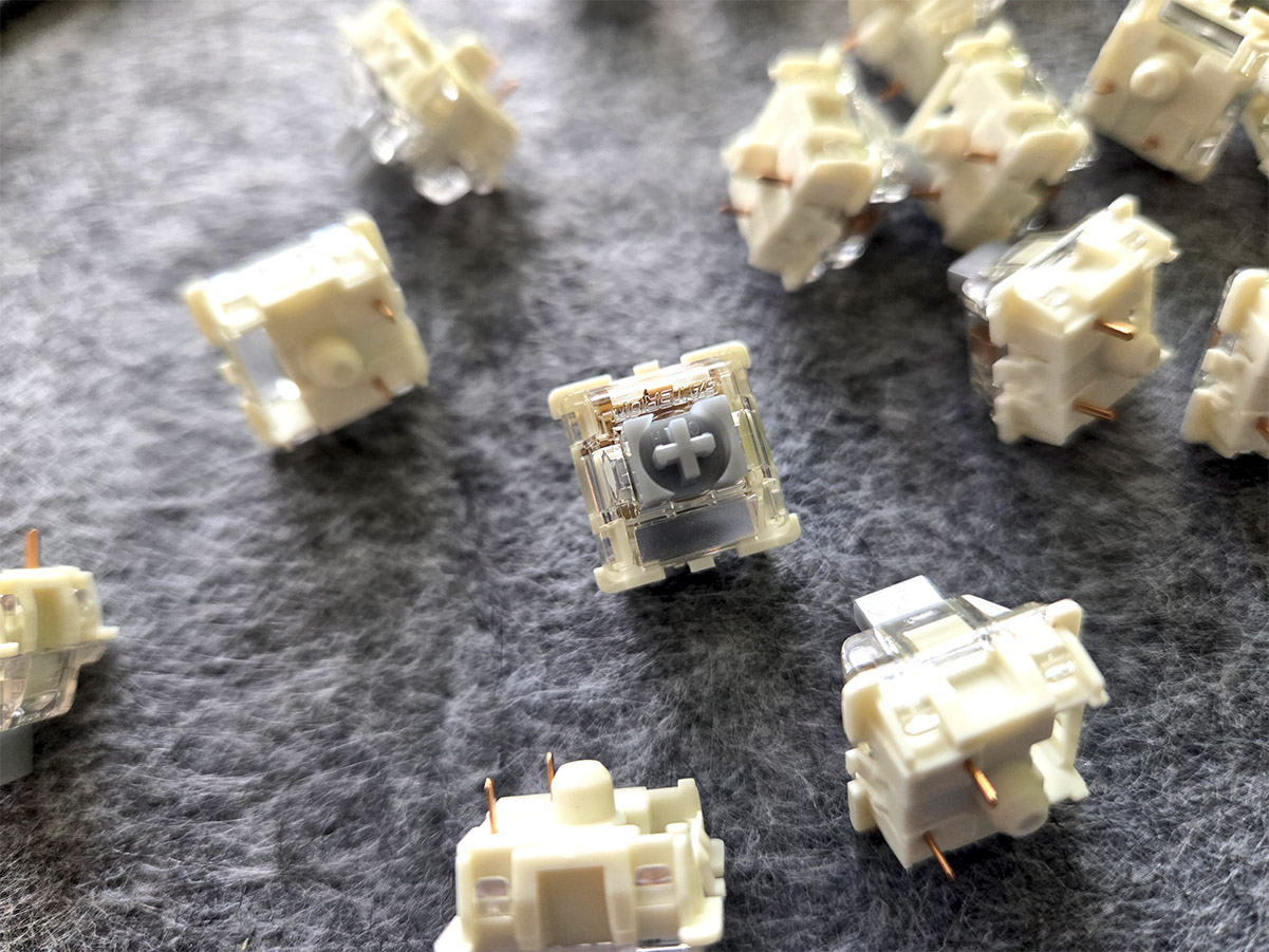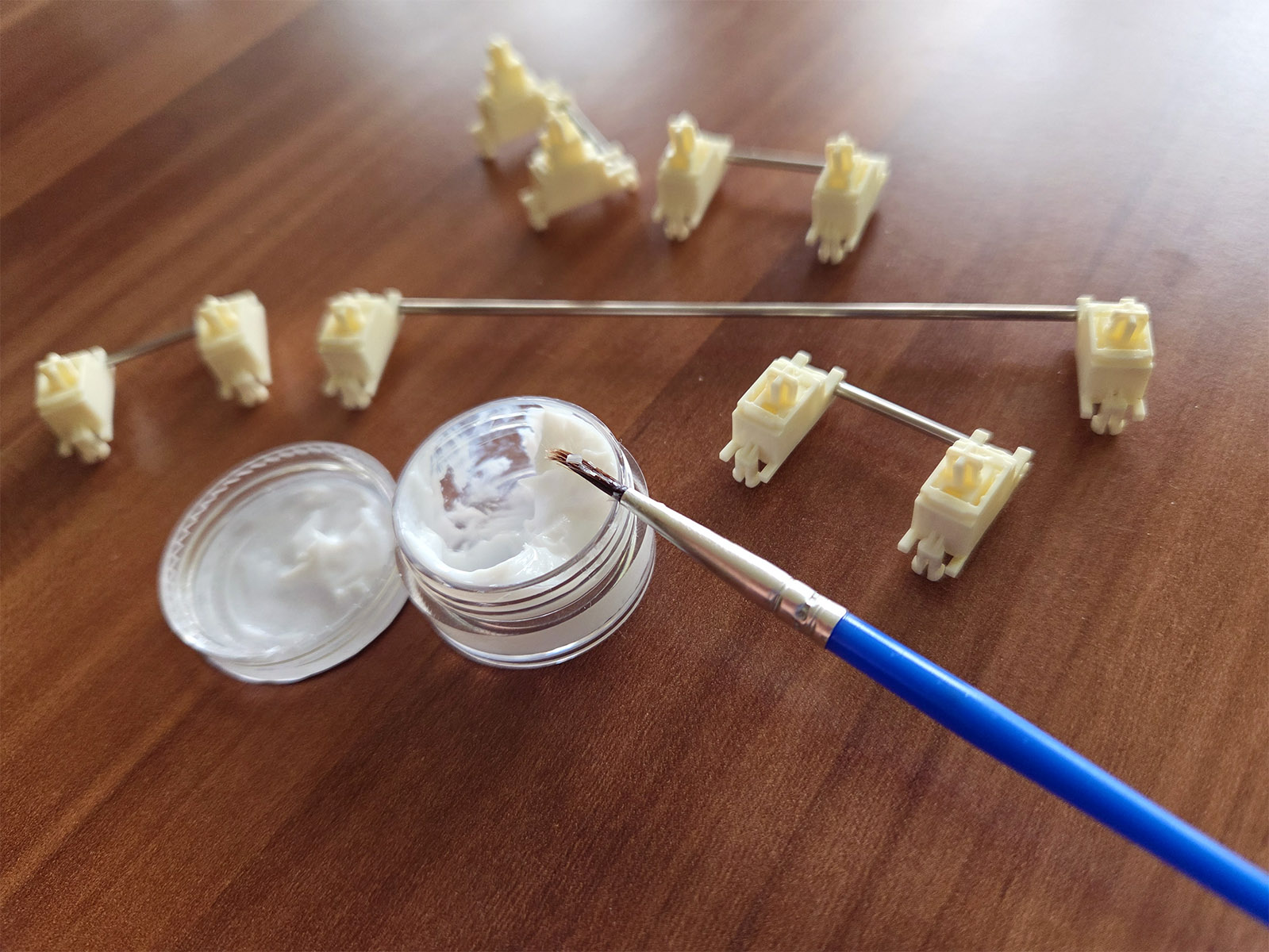 Stabilizatory wsadzone w płytkę PCBTeoretycznie smart powinnam zastosować do jeszcze jednej rzeczy – smarowania switchów. Praktycznie Gaterony, które kupiłam były fabrycznie nasmarowane („pre-lubed”) co oznacza, iż nasmarował je producent w procesie produkcji. Zdecydowana większość dostępnych przełączników to „pre-luby”, ale wciąż łatwo można znaleźć takie, które wymagałyby manualnego nasmarowania. Na szczęście mnie się to nie udało.