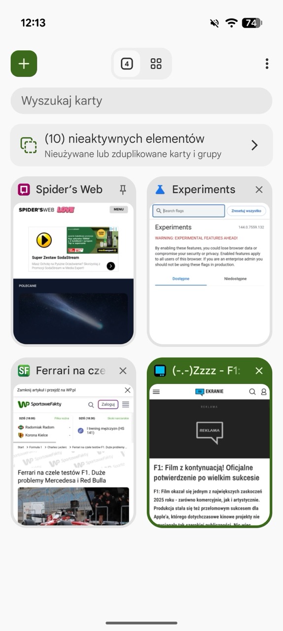 Google Chrome z przypinaniem kart. Wersja na Androida przoduje