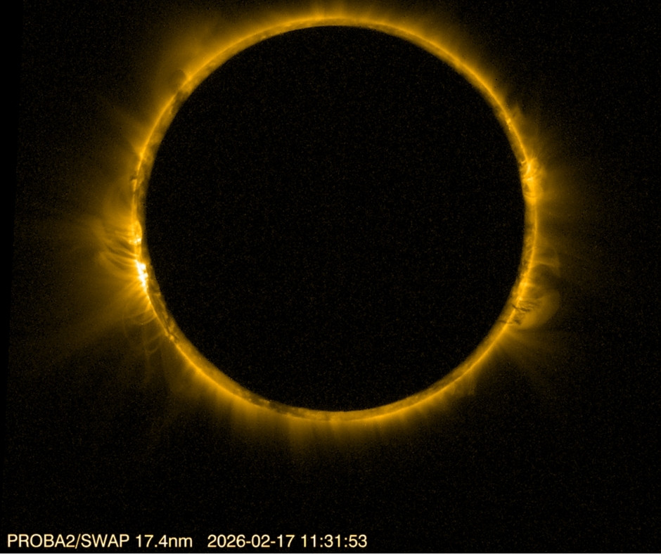 Co istotne, Proba-2 nie fotografuje gwiazdy w takim świetle, w jakim widzimy ją gołym okiem. Obraz powstaje dzięki kamerze SWAP, rejestrującej promieniowanie w ekstremalnym ultrafiolecie o długości fali 17,4 nanometra. To zakres, w którym doskonale widać gorącą, zjonizowaną plazmę korony słonecznej, czyli najbardziej zewnętrznej warstwy atmosfery naszej gwiazdy. Na zdjęciach z SWAP pierścień ognia to tak naprawdę świecąca korona, otaczająca zakryty przez Księżyc, ciemny środek tarczy Słońca.