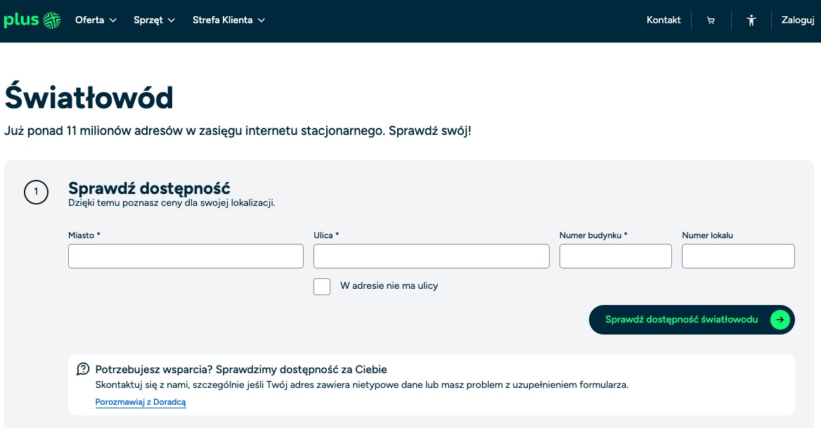 Skutecznym sposobem na sprawdzenie dostępności internetu u konkretnych dostawców jest skorzystanie z ich stron internetowych. Aby zweryfikować dostępność światłowodu Plus, należy: