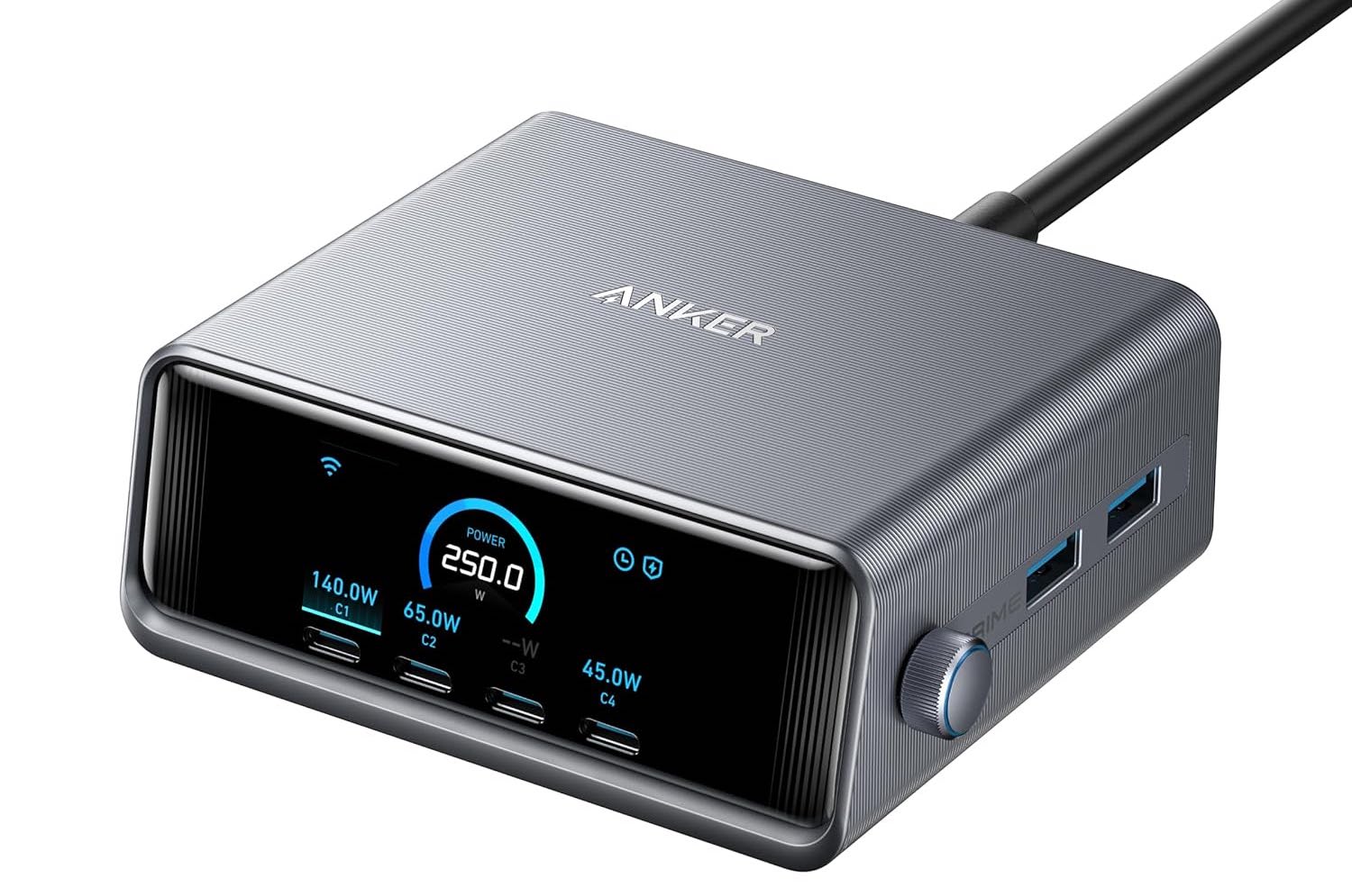 Ładowarka USB-C Anker Prime 250 W, ultraszybka 6-portowa ładowarka GaN, wyświetlacz LCD 6 cm, inteligentny kontroler (MacBook, iPhone, Pixel, Galaxy): 674 zł -> 479 zł