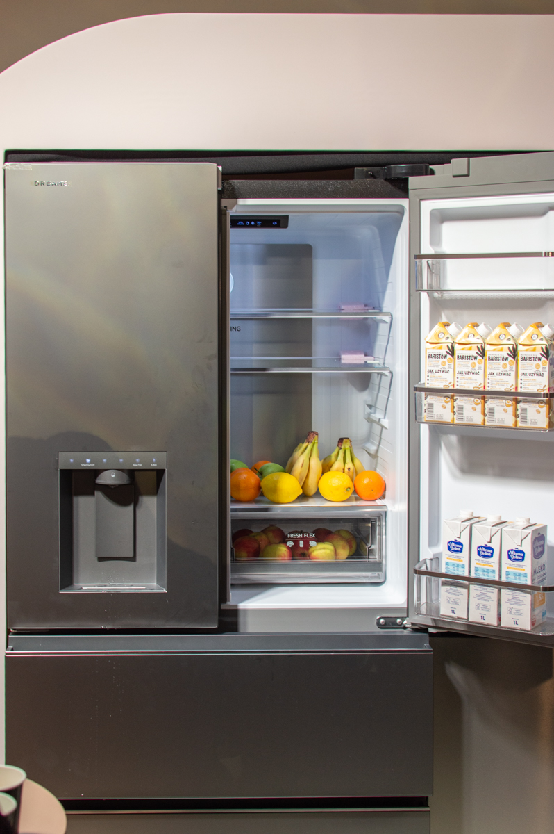 Dreame Mega ProNajwiększą niespodzianką w segmencie AGD są lodówki z serii Mega Pro. Dreame postawiło na konstrukcje, które z zewnątrz wyglądają jak klasyczne modele z segmentu mid-range, ale wewnątrz oferują zaskakująco dużo przestrzeni – od 406 do 456 litrów. To zasługa technologii SpaceBoost, czyli sprytnej optymalizacji układu izolacji i komory chłodniczej.