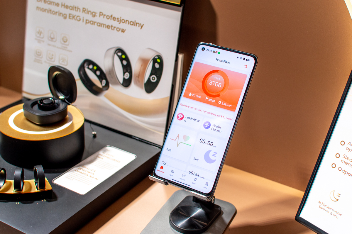 Smart ring DreameDreame pokazało też akcesoria, które mają budować ekosystem. Najciekawszy jest smart ring wykonany z ceramiki lotniczej, o grubości zaledwie 2,5 mm. Monitoruje sen, tętno, HRV, SpO₂, a do tego pozwala sterować muzyką, prezentacjami czy aparatem dzięki gestów.