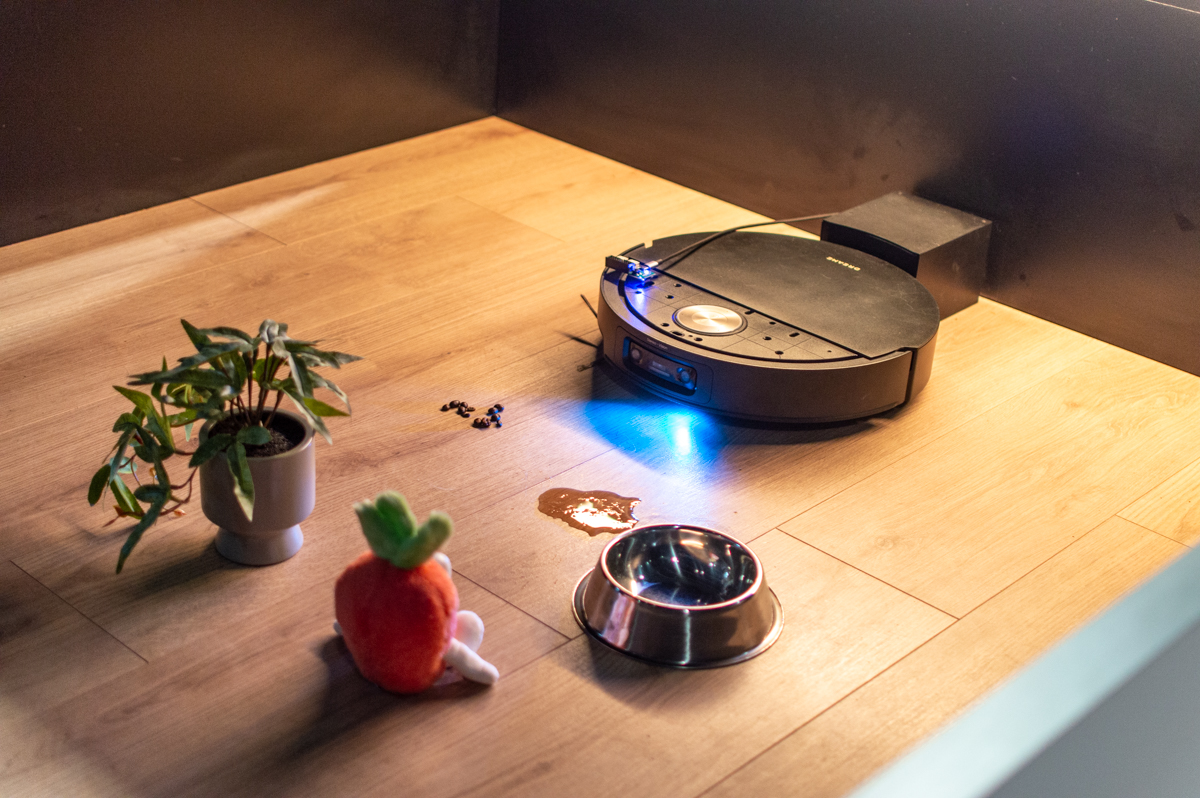 Dreame X60 UltraWśród nowości nie mogło zabraknąć robota sprzątającego. X60 Ultra (lub X60 Max Ultra Complete) to sztandarowiec z mocą ssania 35 000 Pa – ogromnym skokiem względem poprzednika. Konstrukcja ma tylko 7,95 cm wysokości, bo wieżyczka nawigacji chowa się w obudowie, co pozwala wjeżdżać pod większość mebli.