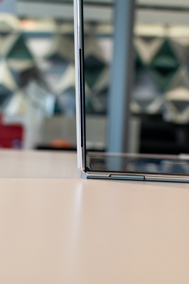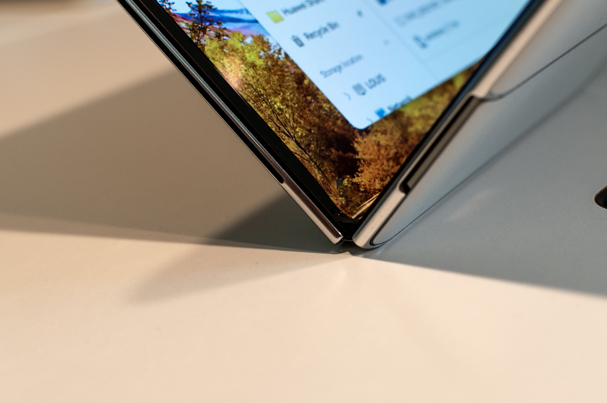 Po pełnym rozłożeniu MateBook Fold ma zaledwie 7,3 mm grubości po lewej stronie i 7,6 mm po prawej. To mniej niż większość topowych telefonów, co jest osiągnięciem technicznym graniczącym z cudem, jeżeli weźmiemy pod uwagę, iż mówimy o pełnoprawnym komputerze z systemem chłodzenia, baterią i całą elektroniką.
