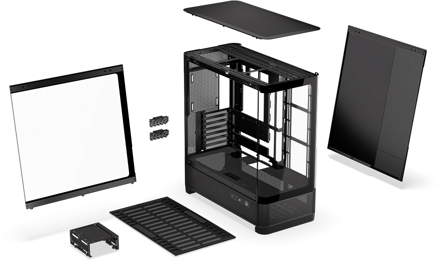 Wnętrze obudowy pomieści płyty główne w formacie eATX, ATX, Micro ATX i Mini ITX (również modele ze złączami z tyłu) oraz karty graficzne o maksymalnej długości 450 milimetrów. Wieżowe chłodzenia procesora mogą mieć wysokość do 179 milimetrów, natomiast fani cieczy zmieszczą tutaj AiO z choćby 420-milimetrowymi radiatorami. Dla nośników danych przewidziano dwa miejsca 3,5″ i trzy 2,5″.