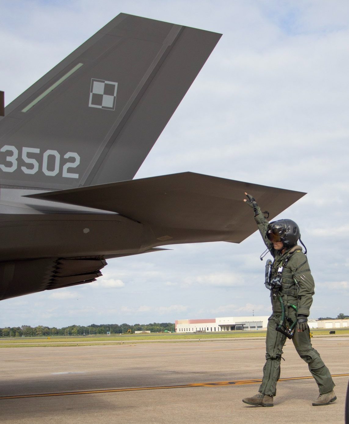 Polski pilot przy polskim F-35. Fot. Sztab Generalny WPPotem tempo będzie niższe, ale stałe: cztery myśliwce w 2027 r., kolejne cztery w 2028 r. i dwa ostatnie egzemplarze w 2029 r. W ten sposób Polska osiągnie pełną flotę 32 maszyn F-35A, zgodnie z umową zawartą w styczniu 2020 r.