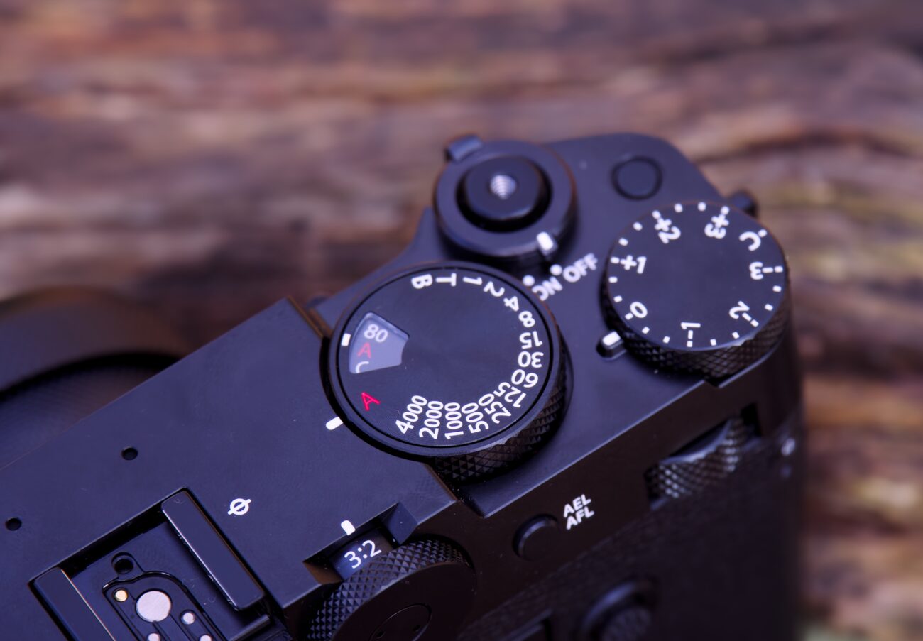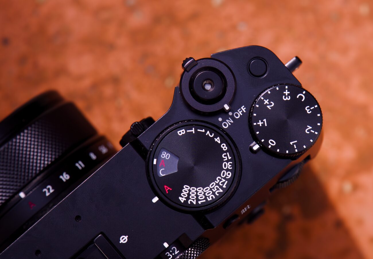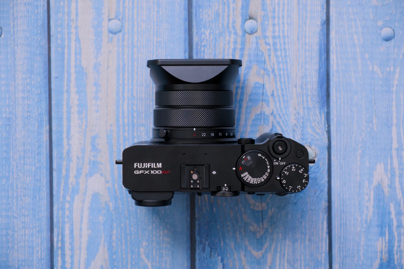 Po wyjęciu GFX100RF z pudełka można praktycznie od razu zacząć fotografowanie. Aparat nie wymaga żadnej wstępnej konfiguracji, choć liczba pokręteł i elementów sterujących może na początku robić wrażenie. Na górnej płycie znajdziemy kontrolę czułości ISO, czasu migawki oraz kompensacji ekspozycji. Zmiana ISO odbywa się poprzez podniesienie pierścienia wokół pokrętła migawki – dokładnie tak, jak w modelu X100VI.