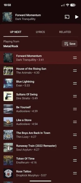 - Uproszczone “Powiązane”: Z ekranu głównego znika też osobna karta “Powiązane”. W nowej odsłonie odtwarzacza, aby odkryć podobne piosenki, wystarczy, iż dotkniemy bezpośrednio nazwy aktualnie odtwarzanego utworu.