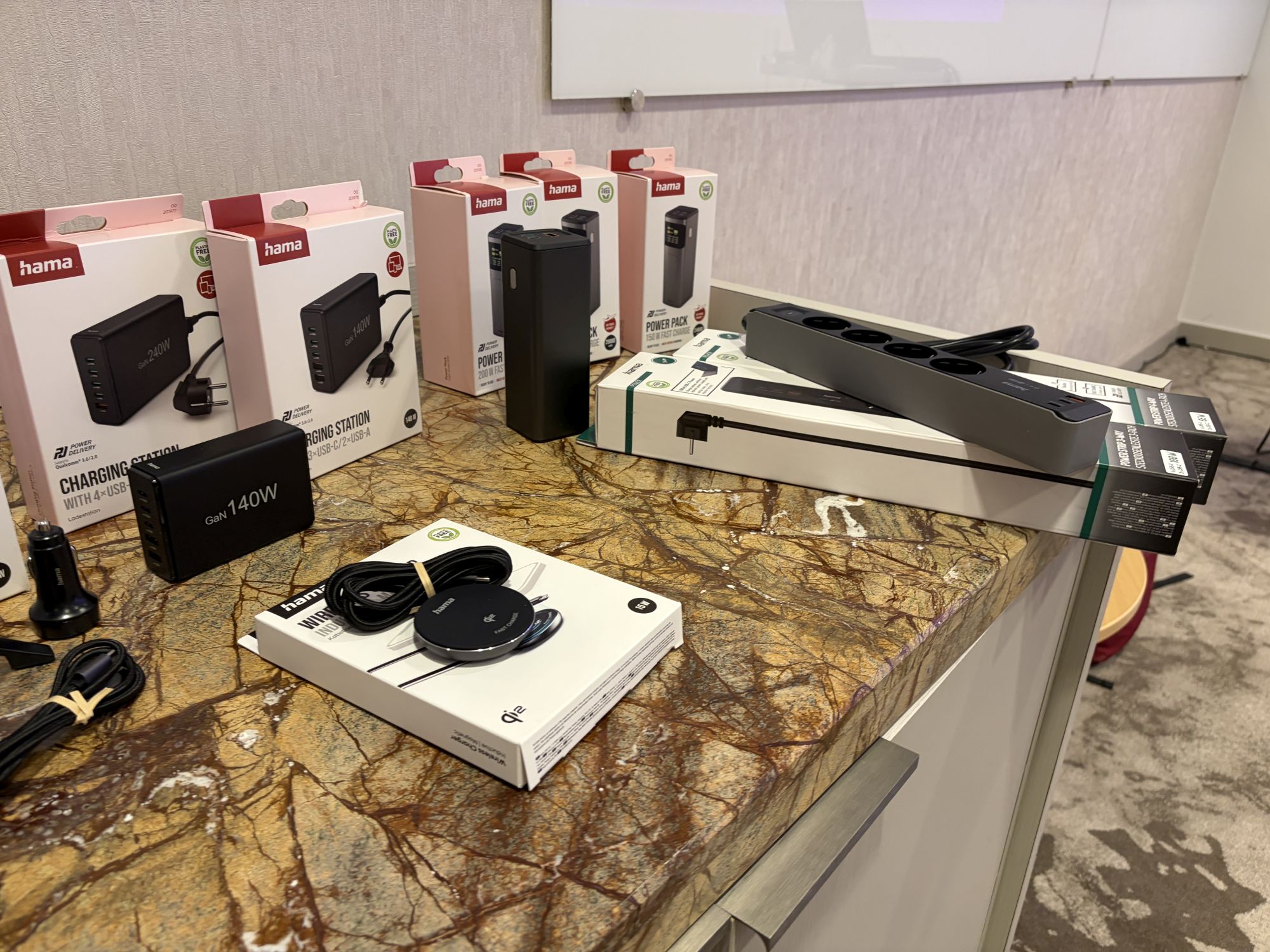 Widać też duży nacisk na wydajne zasilanie. Moją uwagę zwróciła stacja ładująca o mocy 240 W. To potwór, który bez problemu „uciągnie” jednocześnie wydajnego laptopa, tablet i telefon, wspierając przy tym Power Delivery. Hama pokazała też potężny powerbank o pojemności 24 000 mAh i mocy wyjściowej do 200 W – idealny kompan podróży dla cyfrowych nomadów.