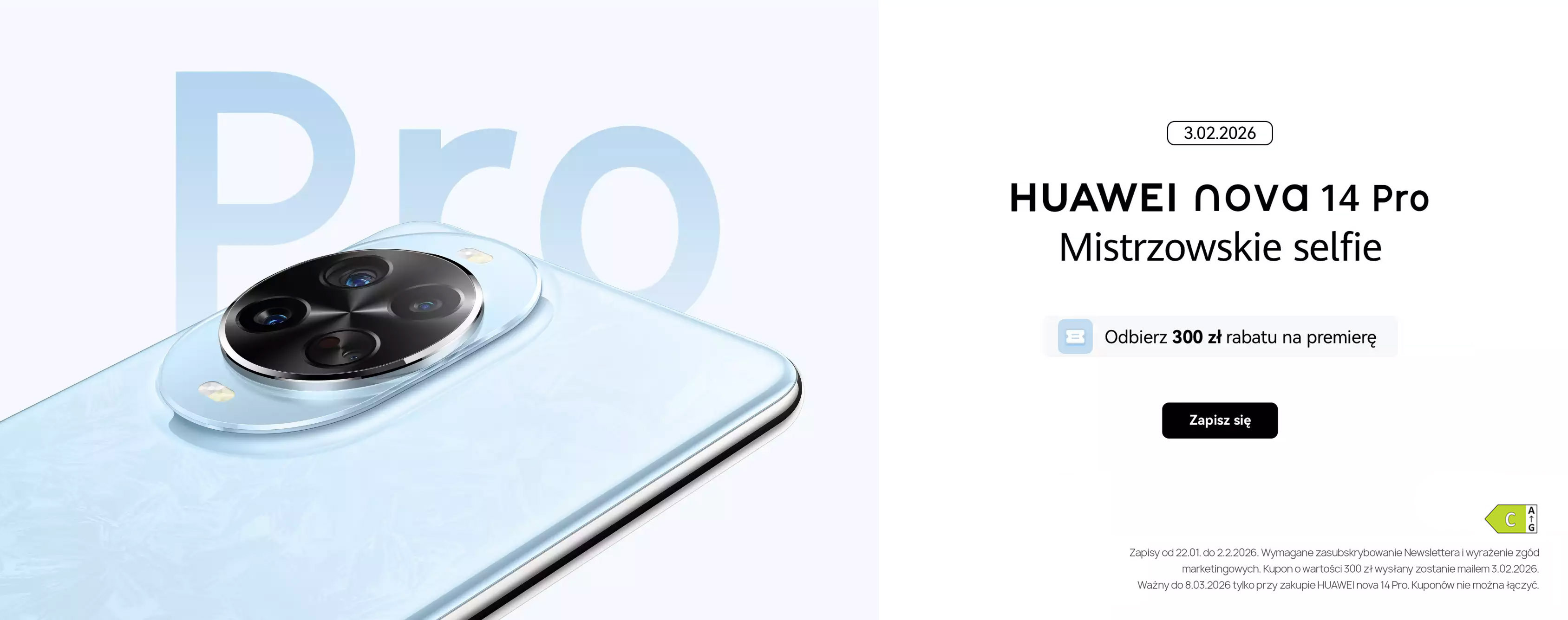 Kupony rabatowe zostaną przesłane na podanego maila w dniu premiery urządzeń. Kody będzie można wykorzystać do 8 marca 2026 r. wyłącznie w internetowym sklepie Huawei.pl.