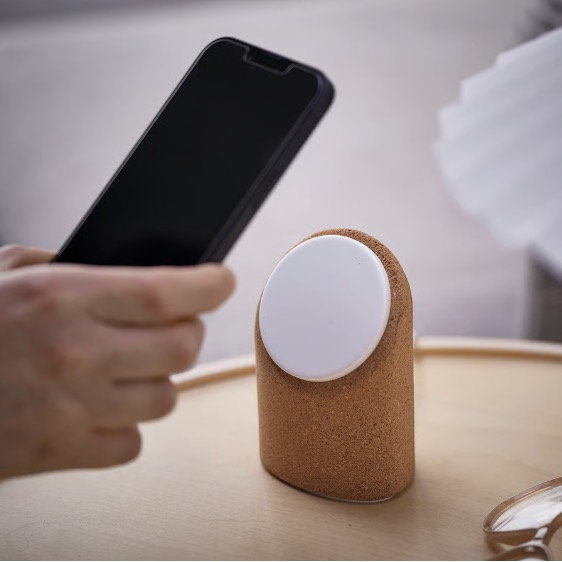 Oprócz ładowarki w kształcie pączka Ikea przygotowała także drugi model, przypominający podstawkę. Również obsługuje Qi2, ale jest bardziej elegancki i przede wszystkim stacjonarny. Wykonano go z materiału przypominającego korek. Wygląda naprawdę dobrze – sam chętnie postawiłbym go na swoim biurku, ale jest zasadniczy problem: ładowarka nie jest dostępna w Polsce.