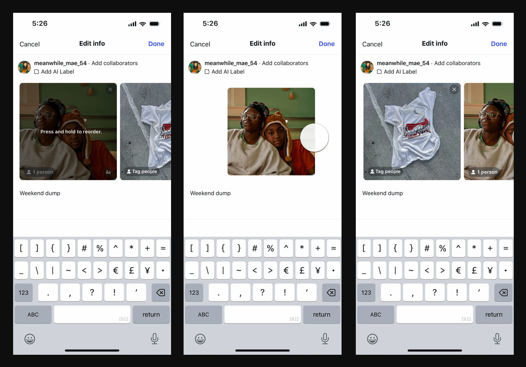 Nowa opcja działa w prosty sposób. Po wejściu w opublikowaną karuzelę wystarczy przejść do menu edycji posta, a następnie przytrzymać wybrane zdjęcie lub wideo i przeciągnąć je w inne miejsce. Mechanizm przypomina znane już z innych aplikacji sortowanie elementów metodą „przeciągnij i upuść”.