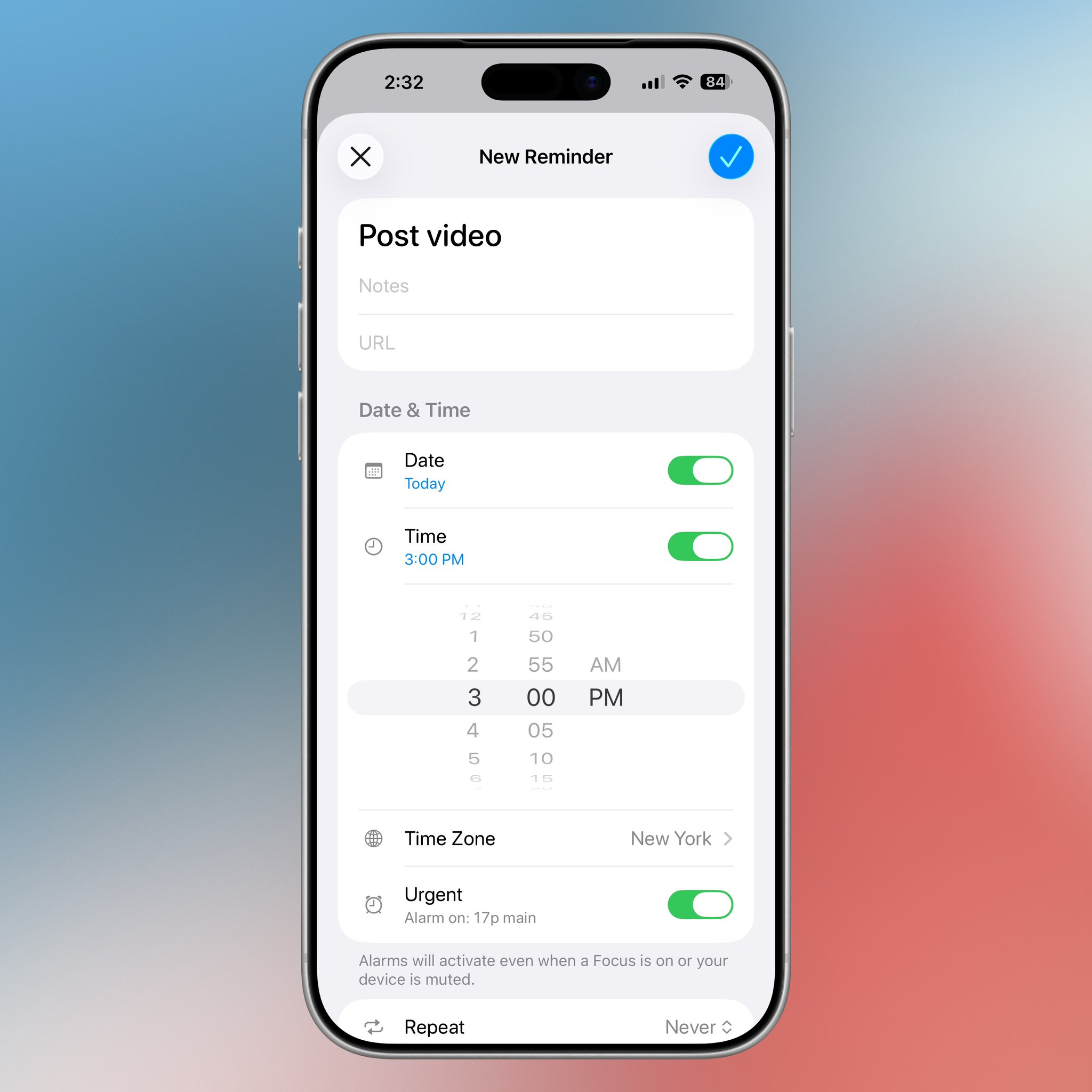 Alarm można skonfigurować włączając opcję „Pilne” podczas tworzenia przypomnienia.