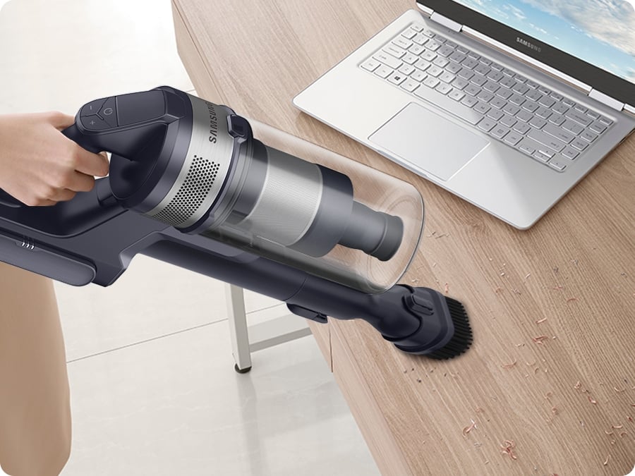 Odkurzacz pionowy SAMSUNG VS15A60AGR5, należący do kategorii produktów do 1000 zł, to ekonomiczne rozwiązanie do codziennego sprzątania. Wyróżnia się pojemnością akumulatora 2850 mAh, co zapewnia do 40 minut pracy na jednym ładowaniu. Urządzenie generuje moc ssania do 150 AW, co jest wystarczające, aby efektywnie usuwać zabrudzenia z różnych powierzchni. Kluczową cechą jest jego wielofunkcyjność, z możliwością przekształcenia w odkurzacz ręczny, co ułatwia sprzątanie trudno dostępnych miejsc. Filtracja powietrza odbywa się w trzech etapach, zatrzymując 99,999% drobinek kurzu i alergenów, co jest atutem dla alergików.