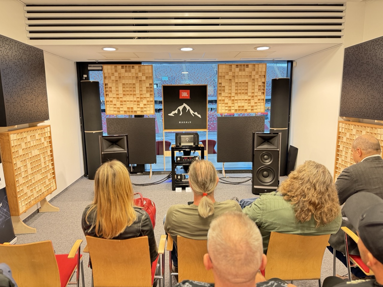 W jednej ze specjalnie przygotowanych sal odsłuchowych na stadionie PGE Narodowym można było sprawdzić, jak w praktyce radzi sobie JBL Summit Makalu. To zupełnie nowy, topowy model kolumn od amerykańskiego producenta. Zastosowano w nich nowo opracowany zestaw kilku przetworników zapewniających krystalicznie czysty dźwięk – o czym można było przekonać się na miejscu.