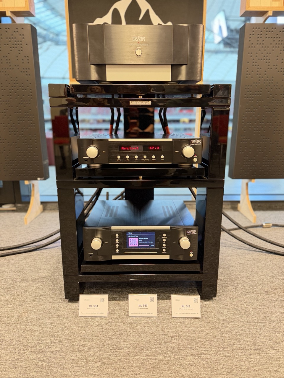 Oczywiście tego typu targi jak Audio Video Show nie służą wyłącznie do tego, aby sprawdzić, jak sprzęt wygląda, ale również do tego, by posłuchać, jak gra. W tym celu kolumny podłączono do sprzętów marki Mark Levinson, którymi były wzmacniacz dual-mono ML 534, przedwzmacniacz ML 523 i cyfrowego odtwarzacza audio ML 519. Ich łączna wartość to, bagatela, 331700 zł.