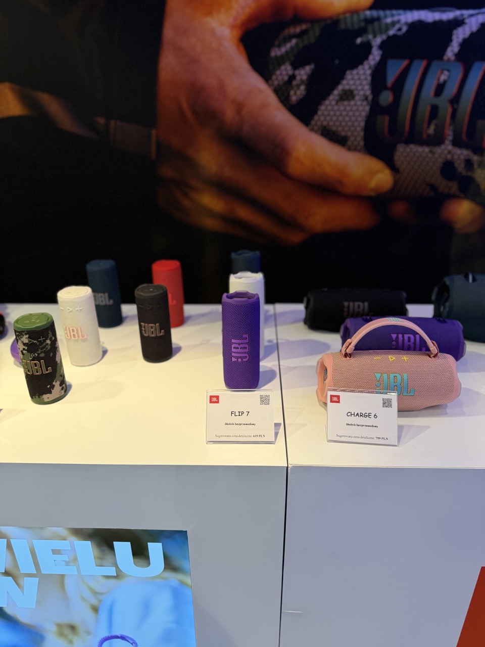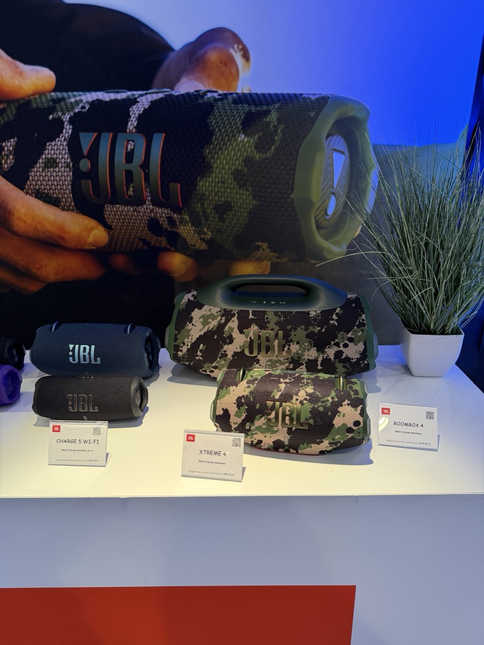 W kolejnej sali mogliśmy przyjrzeć się głośnikom o najróżniejszych rozmiarach i kształtach. Wśród nich znalazły się takie modele jak Boombox 4, Xtreme 4, Charge 5 Wi-Fi, Charge 6, Flip 7, Clip 5, Horizon 3 i Tuner 3.