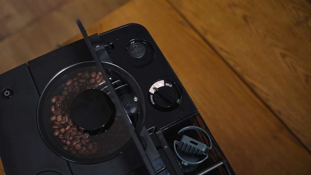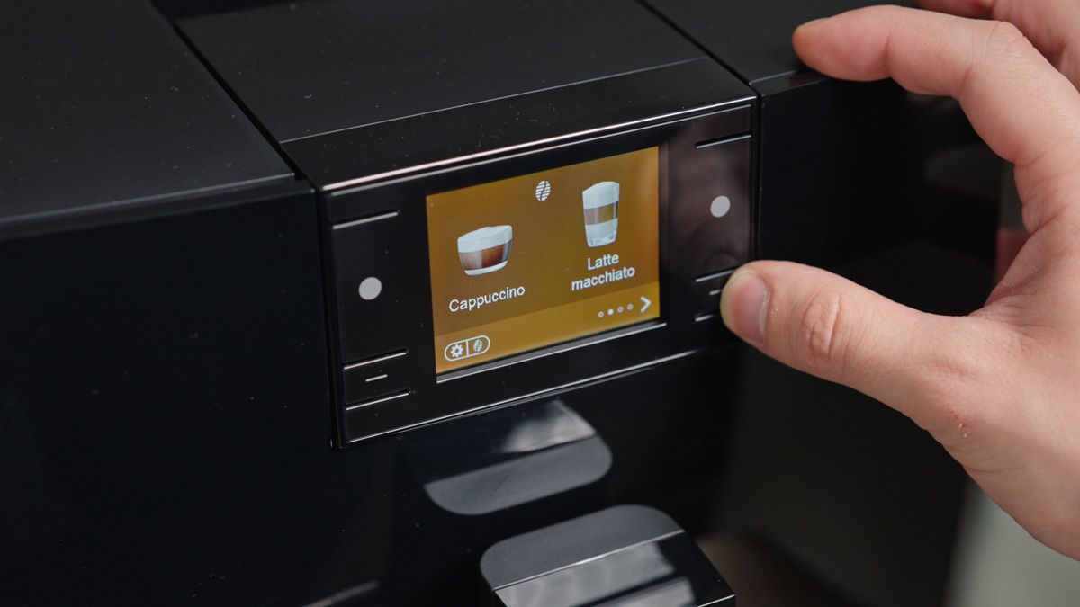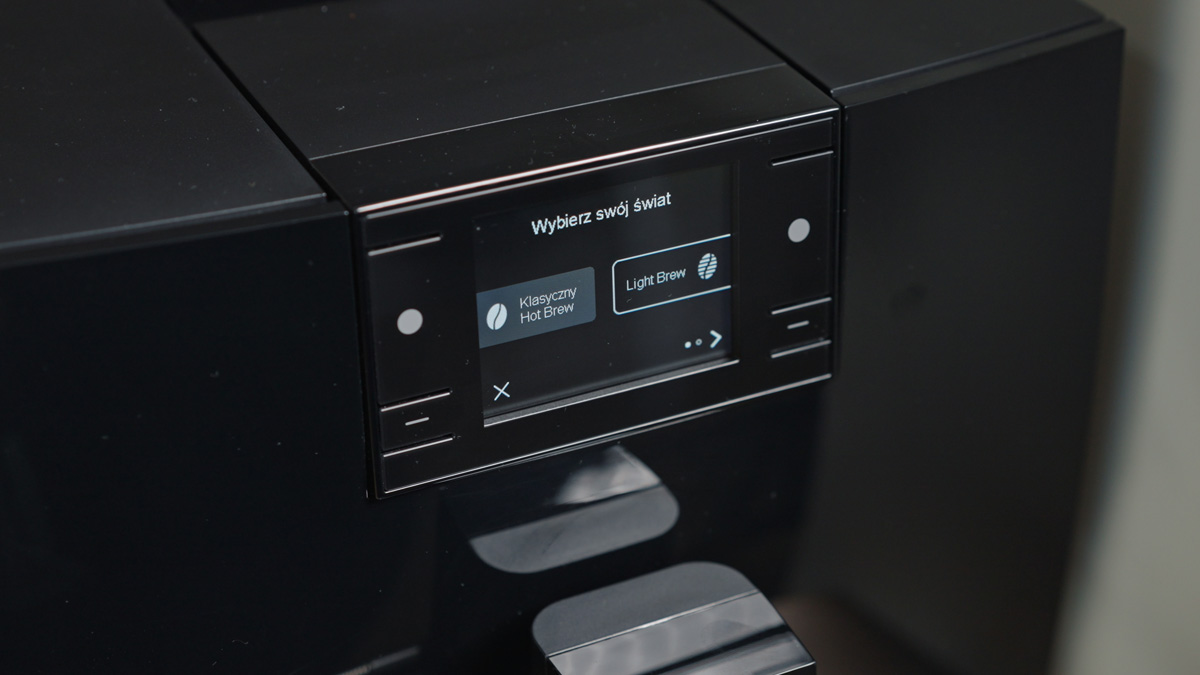 Obsługa odbywa się poprzez 2,8-calowy kolorowy wyświetlacz dotykowy z przyciskami. Interfejs jest intuicyjny, przejrzysty i – co równie ważne – w pełni w języku polskim. Podczas parzenia możemy w czasie rzeczywistym modyfikować parametry: ilość kawy, ilość mleka czy pianki mlecznej. Intensywność smaku regulujemy w 10 poziomach, temperaturę zaparzania w 3 poziomach, a grubość mielenia w 7 poziomach.