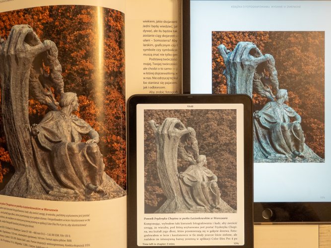 Jeśli chodzi o Kindle Colorsoft – to chyba pierwszy czytnik z kolorowym ekranem, gdzie ten kolor wypada naprawdę naturalnie. Oglądam zdjęcia w książkach i nie mam wcale wrażenia, iż ktoś je namalował pastelowymi kredkami. Czytanie książek o fotografii daje dużą przyjemność, a przeglądanie biblioteczki i czytanie czasopism jest odświeżające.