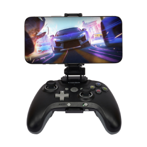 - Klasyczny Pad z Uchwytem (Clip Mount): (np. Xbox Controller + uchwyt, SteelSeries Stratus). To standardowy, pełnowymiarowy pad z doczepianym „ramieniem” na telefon. Oferuje bezkonkurencyjną ergonomię (pełne gripy, duże analogi), ale fatalne wyważenie. Ciężki telefon na szczycie uchwytu ciąży do tyłu, co po 30 minutach męczy dłonie.
