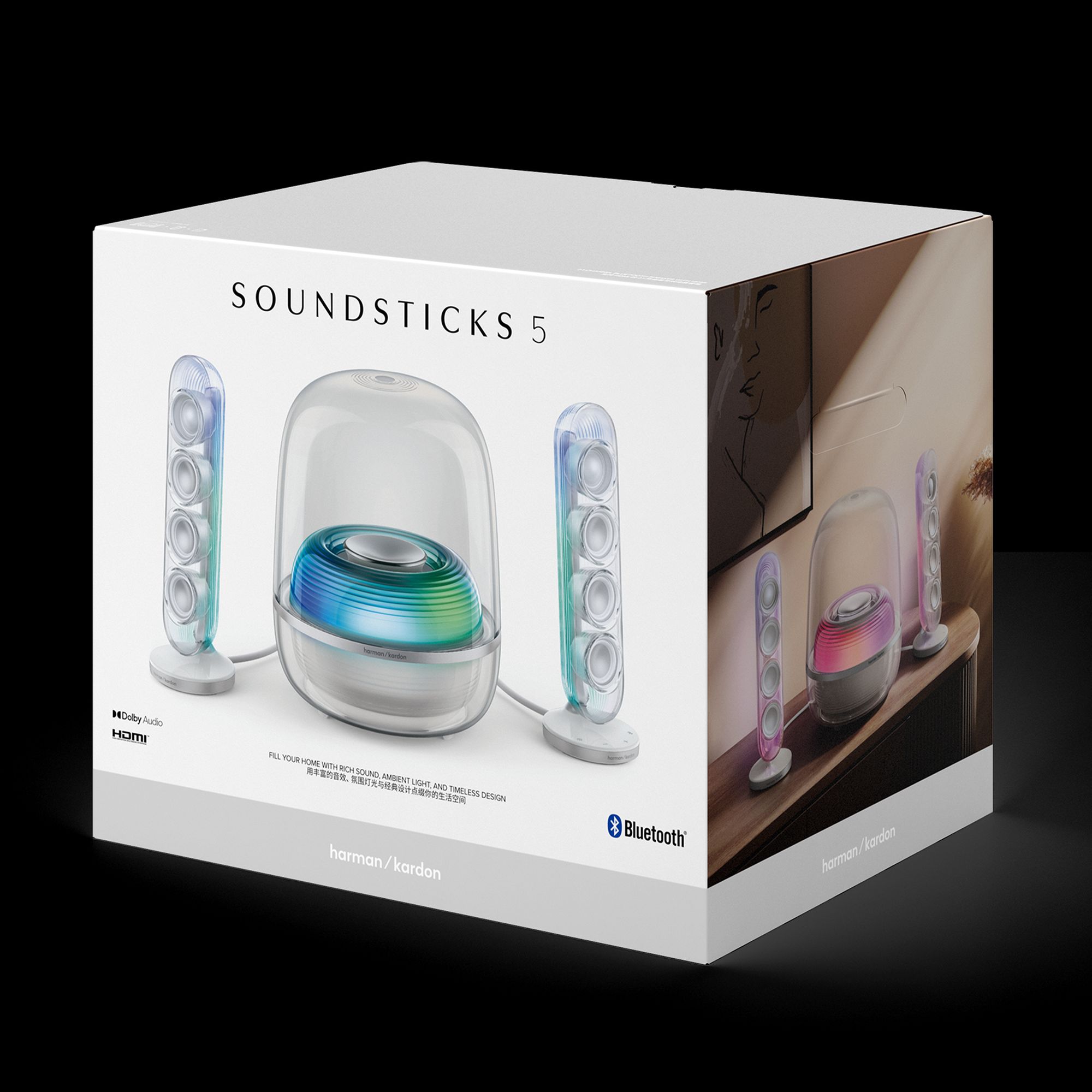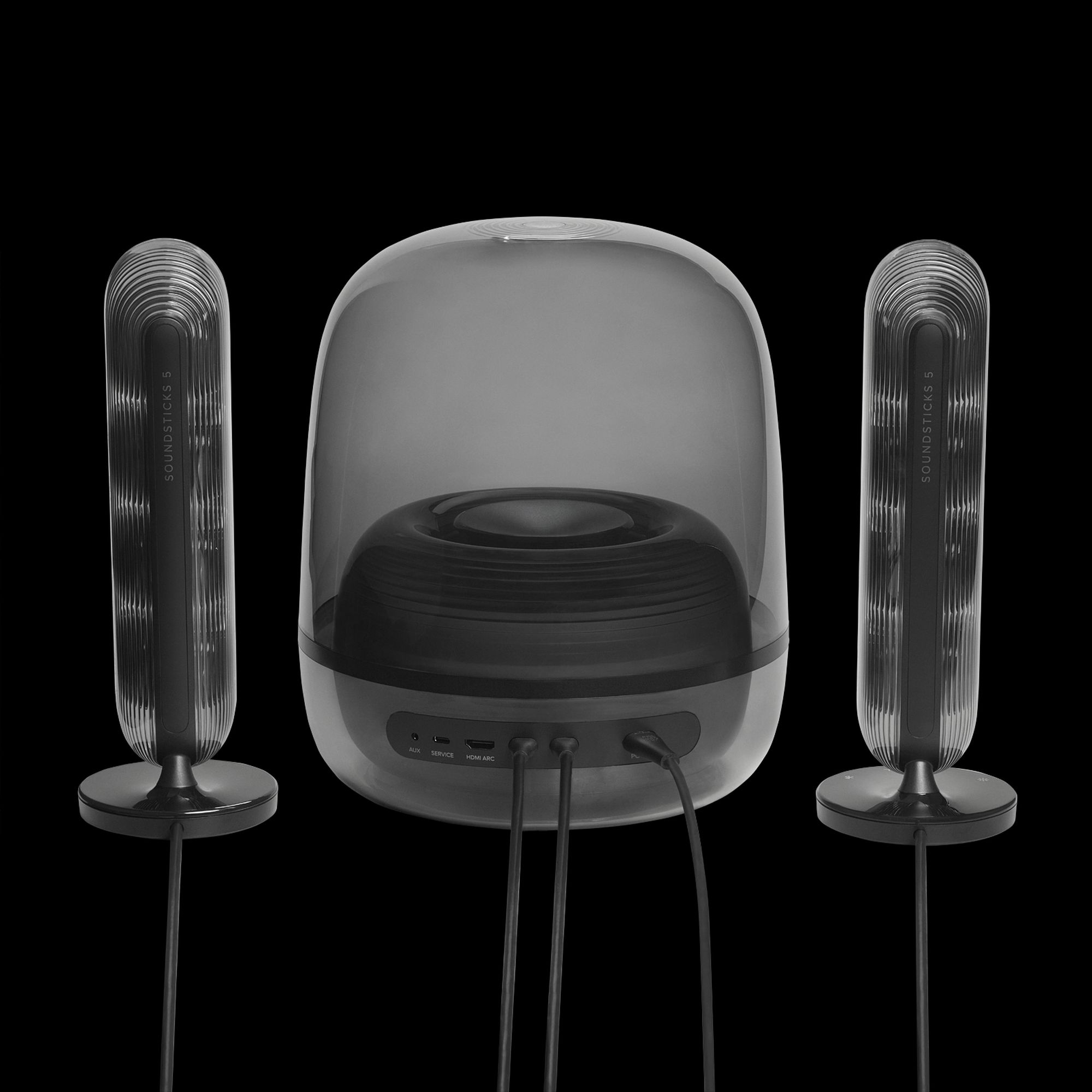 SoundSticks 5 to wciąż ten sam przezroczysty design, który znamy od lat, ale tym razem producent sporo popracował w kwestii funkcjonalności. Dzięki złączu HDMI ARC zestaw 2.1 w końcu bezproblemowo dogada się z telewizorem. Piąta generacja głośników trafia na rynek, celując nie tylko w biurka komputerowe, ale i salony.