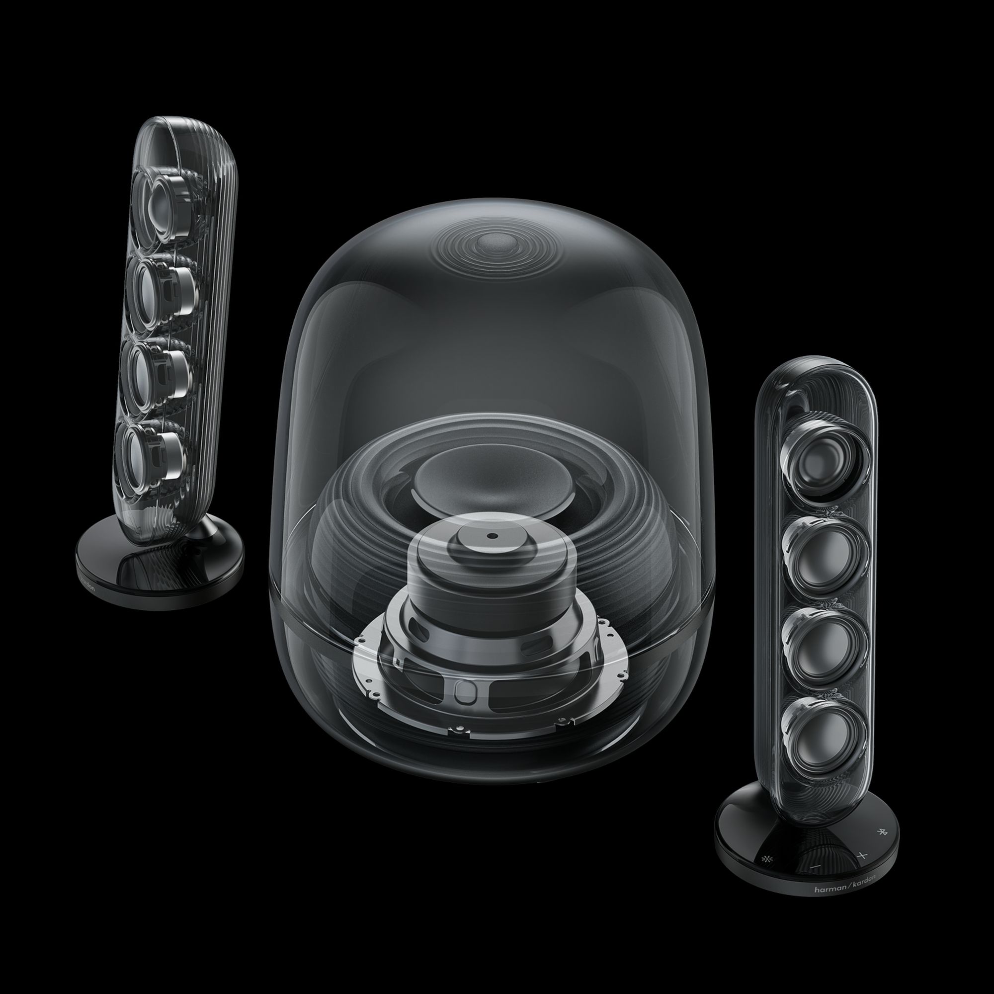 Producent nie zrezygnował z efektów wizualnych. Przezroczysta kopułka subwoofera i satelity są podświetlane, a animacje świetlne mają synchronizować się z muzyką.