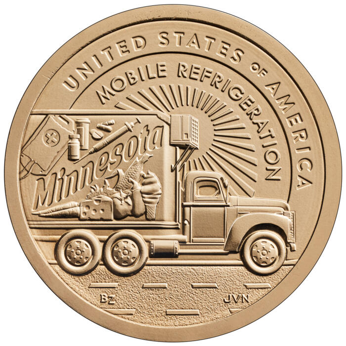 Pozostałe monety to te z Iowa, honorująca dr. Normana Borlauga i jego pracę nad odpornymi uprawami pszenicy jako „ojca Zielonej Rewolucji”, oraz z Minnesoty, przedstawiająca wczesną wersję chłodni, która zrewolucjonizowała transport żywności. Cała seria to świetny sposób na kolekcjonowanie historii innowacji, z monetami, które nie tylko ładnie wyglądają, ale też edukują o tym, co kształtowało współczesny świat.