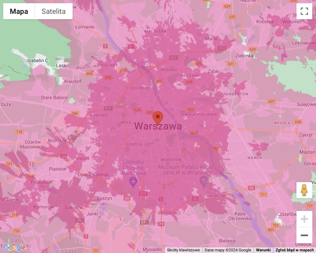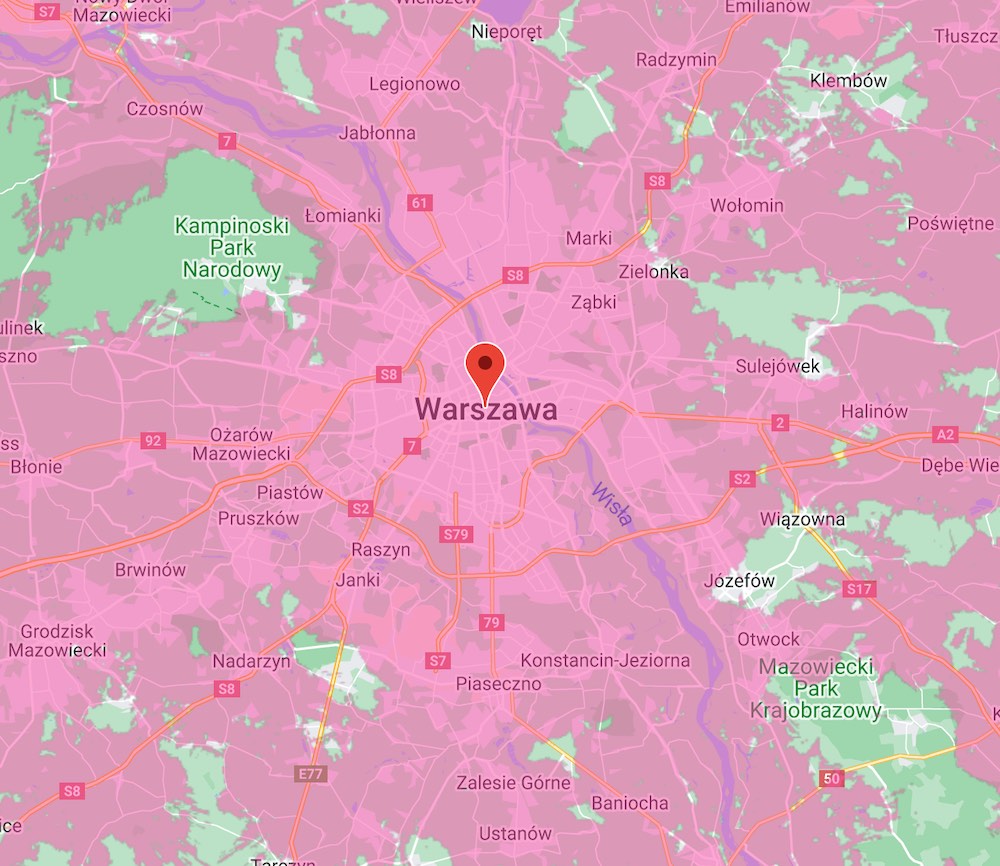 Aktualna mapa zasięgu 5G (jaśniejszy kolor) i 5G Bardziej (ciemniejszy kolor) od T-Mobile – Warszawa i okolice (zrzut ekranu: 9 stycznia 2026 r.)W przypadku Warszawy T-Mobile deklarował już dawno, iż niezależnie od dzielnicy, w której przebywamy, będziemy mieć dostęp do sieci 5. generacji. Oprócz tego zasięgiem magentowego 5G zostały objęte liczne inne miasta i miejscowości w obrębie aglomeracji warszawskiej. A jak to wyglądało wcześniej?