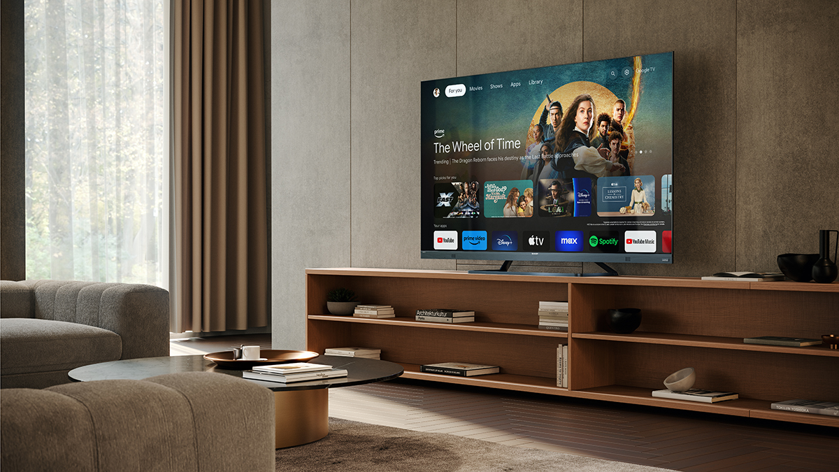 Procesor AiPQ Pro z funkcjami AI analizuje i optymalizuje obraz w czasie rzeczywistym, poprawiając szczegółowość, kolory i kontrast. System Google TV zapewnia płynny dostęp do platform streamingowych, a wbudowany Chromecast umożliwia łatwe przesyłanie treści z urządzeń mobilnych.
