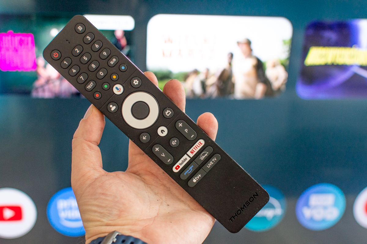 Thomson MiniLED Google TV 55MG7C15Thomson deklaruje podświetlane przyciski pilota jako standard we wszystkich modelach MiniLED. To brzmi jak niewinny szczegół, ale każdy, kto kiedykolwiek szukał pilota po ciemku podczas seansu wie, ile jest w tym praktycznej wartości. Konkurencja zwykle dodaje tę funkcję dopiero w droższych segmentach. Pilot obsługuje też sterowanie głosowe przez Google Assistant i ma bezpośrednie przyciski do YouTube, Netflix, Prime Video, Disney+, Apple TV i Live TV.