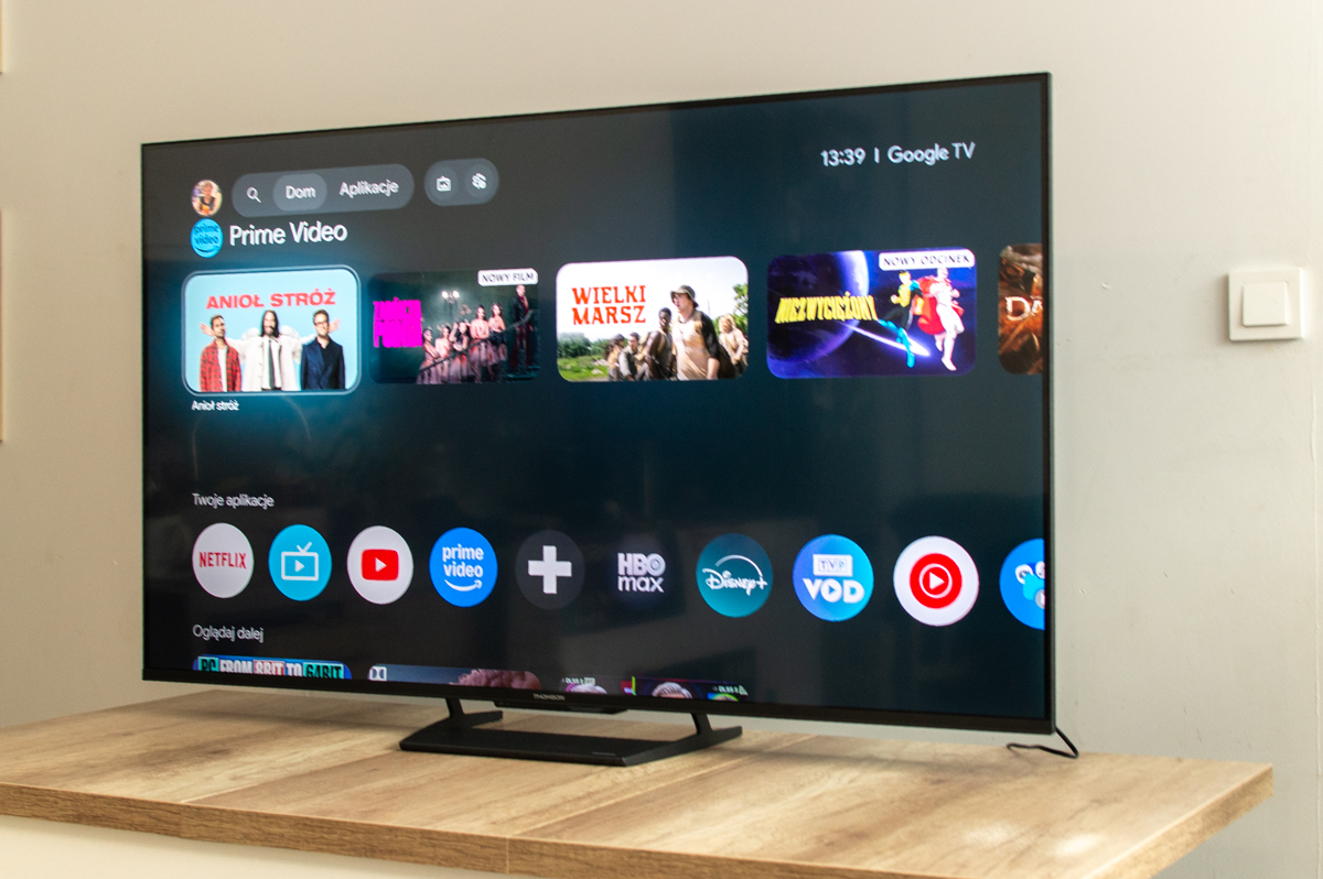 Thomson MiniLED Google TV 55MG7C15Thomson postanowił postawić na Google TV, a nie na własny, autorski interfejs – i to dobra decyzja. Google TV to nakładka na Android TV, która organizuje treści ze wszystkich platform streamingowych w jednym miejscu, nie wymagając wchodzenia do osobnych aplikacji. Netflix, YouTube, Prime Video, Disney+, Apple TV – wszystkie ich biblioteki są przeszukiwalne z jednego miejsca.