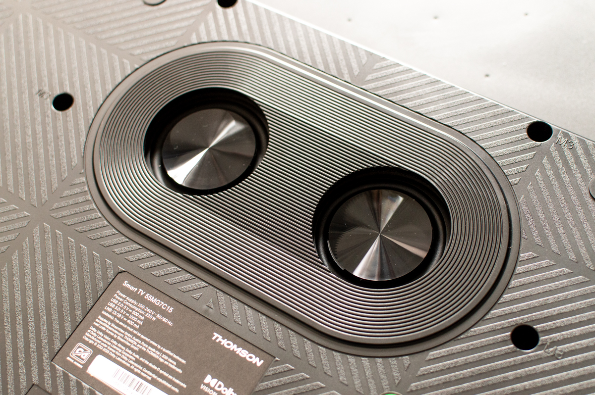 Thomson MiniLED Google TV 55MG7C15Większość telewizorów w tym przedziale cenowym ma głośniki bardzo byle jakie. Thomson wychodzi z nieco inną propozycją: w modelu 55MG7C15 zamontowany jest zintegrowany system 2.1 z wbudowanym subwooferem o mocy 20 W i dwoma satelitami po 10 W każdy. Łącznie daje to 40 W mocy systemowej.