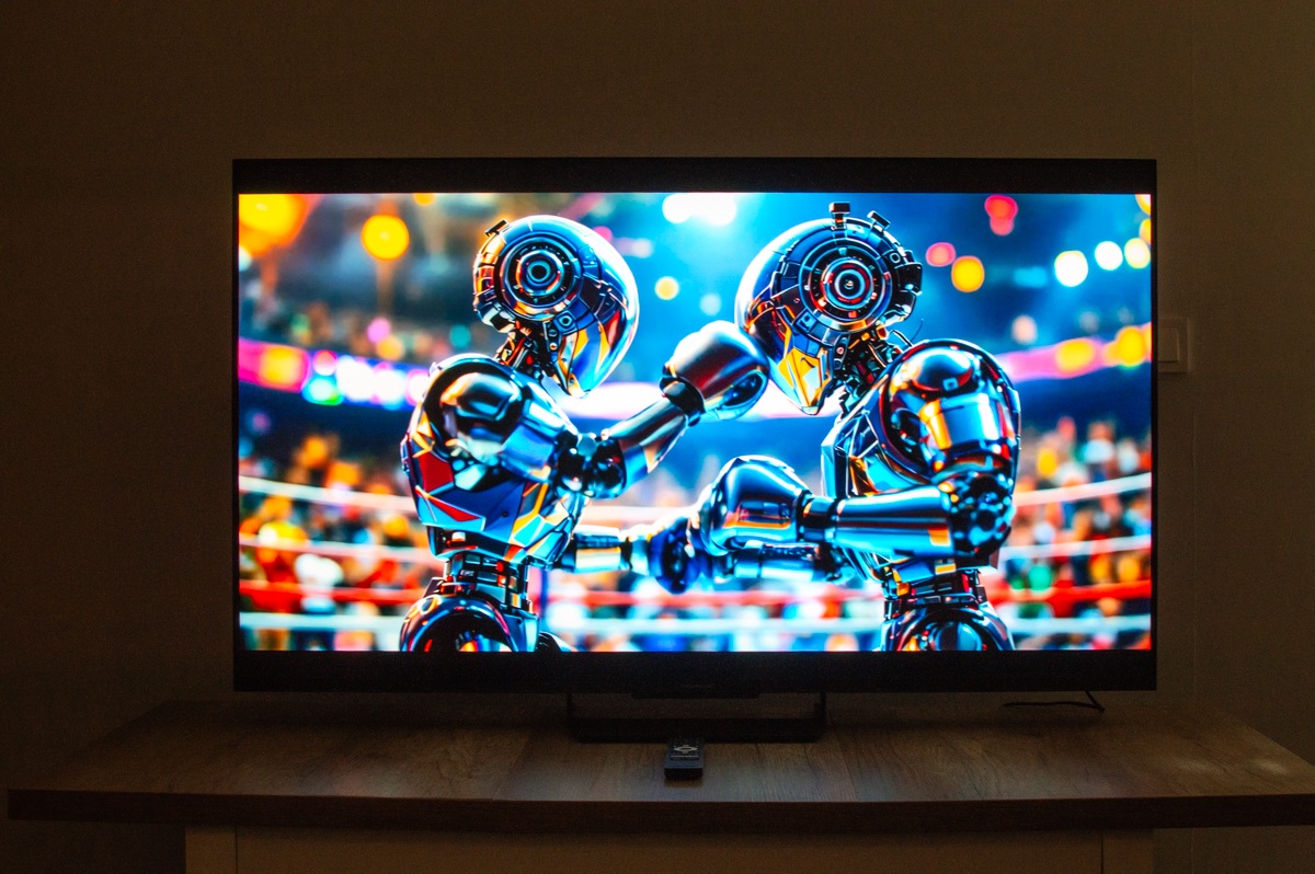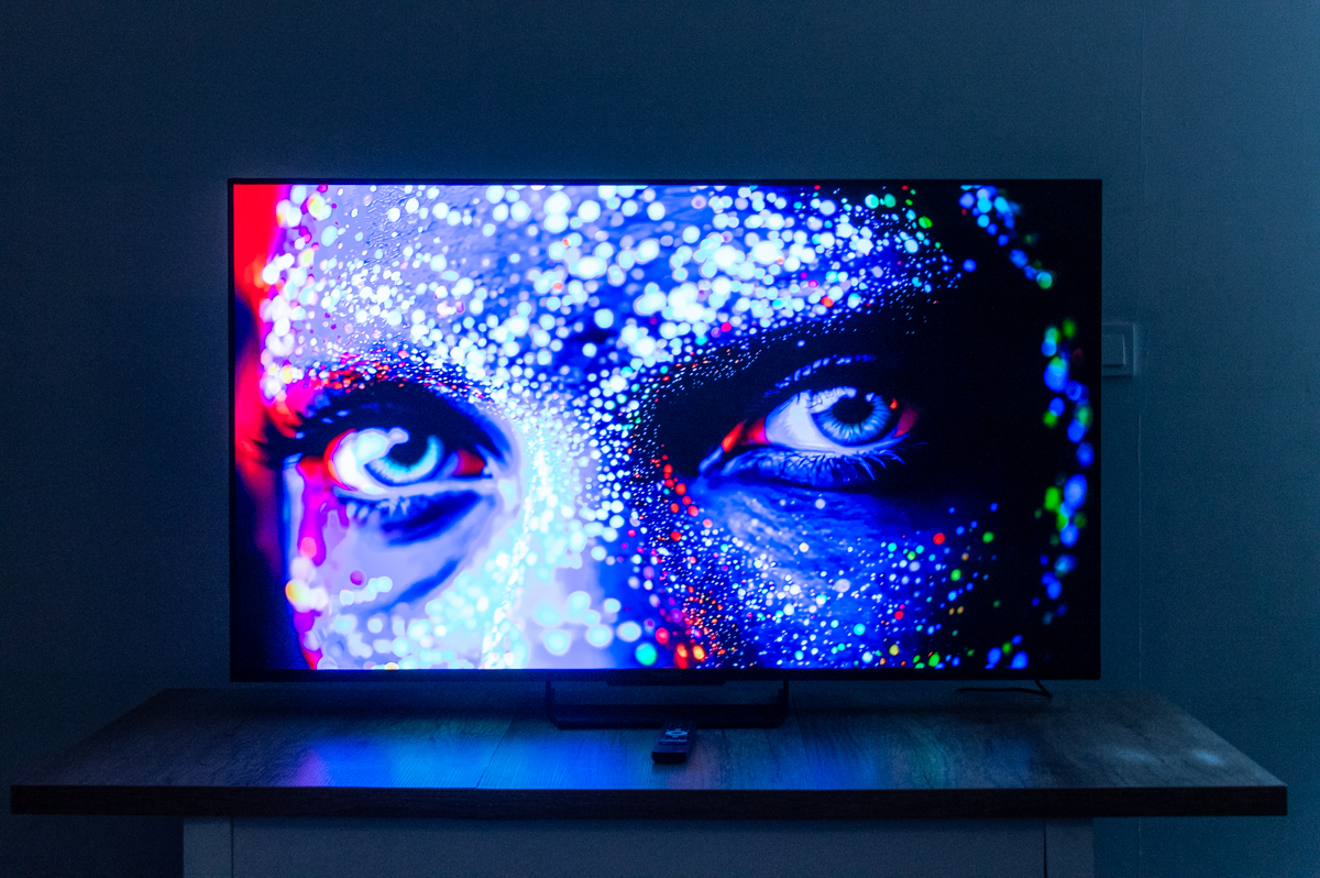 Kilka rzeczy warto powiedzieć wprost. Po pierwsze, 240 stref local dimming na 55 calach to liczba dobra, ale nie wybitna. Przy szybkiej, kontrastowej zawartości (jasne obiekty na czarnym tle) blooming może być widoczny.