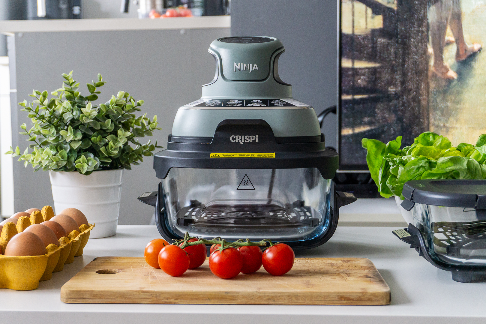 Recenzję zrobić jednak trzeba. Ninja CRISPi stanął więc na kuchennym blacie w katowickim mieszkaniu i zaczął być używany. Codzienna kulinarna praktyka sprawiła, iż zdałem sobie sprawę z popełnionego błędu myślowego. Tu wcale nie chodzi o to, iż air fryer jest przenośny. Największą zaletą tego sprzętu jest to, czego nie podłącza się do prądu: szklana misa, którą mogę od razu wziąć do pracy. Albo położyć na stole w ogrodzie.