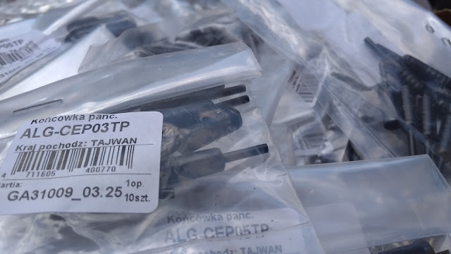 Ostatnio mi zabrakło do nowych projektów kół trochę długości szprych, nypli, testowo zakupiłem także chwyty niedrogie i końcówki pancerzy z noskiem do systemów przerzutki i hamulca.