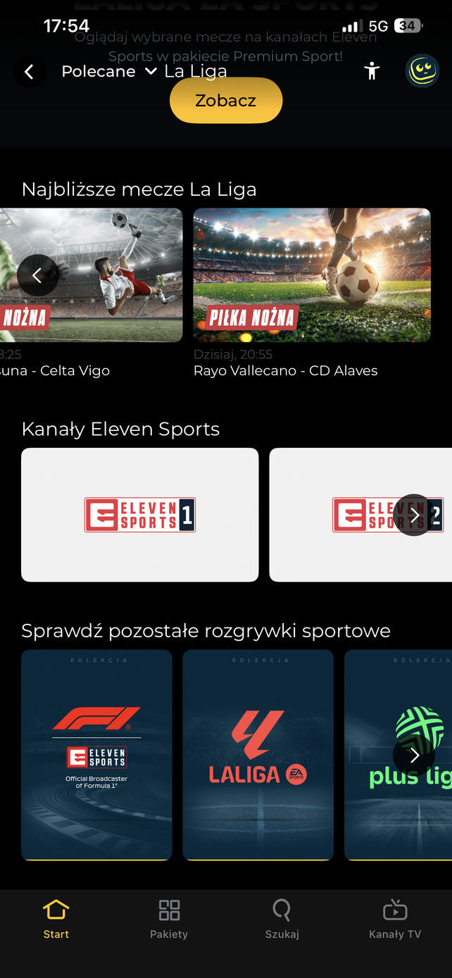 - 24 kanały sportowe TV – sport na żywo (w tym Polsat Sport Premium, Eleven Sports, Eurosport, Polsat Sport Extra i inne).