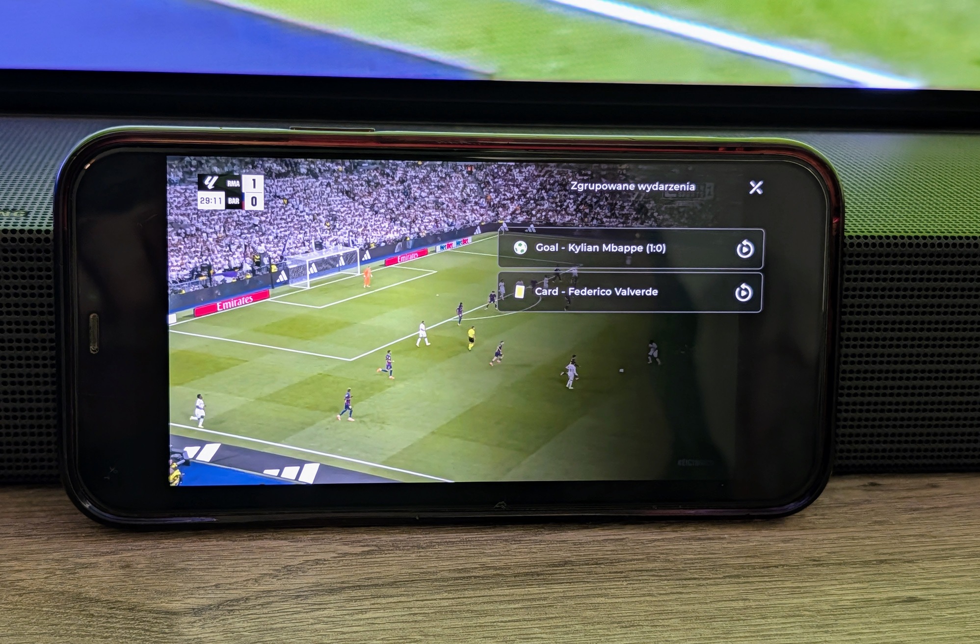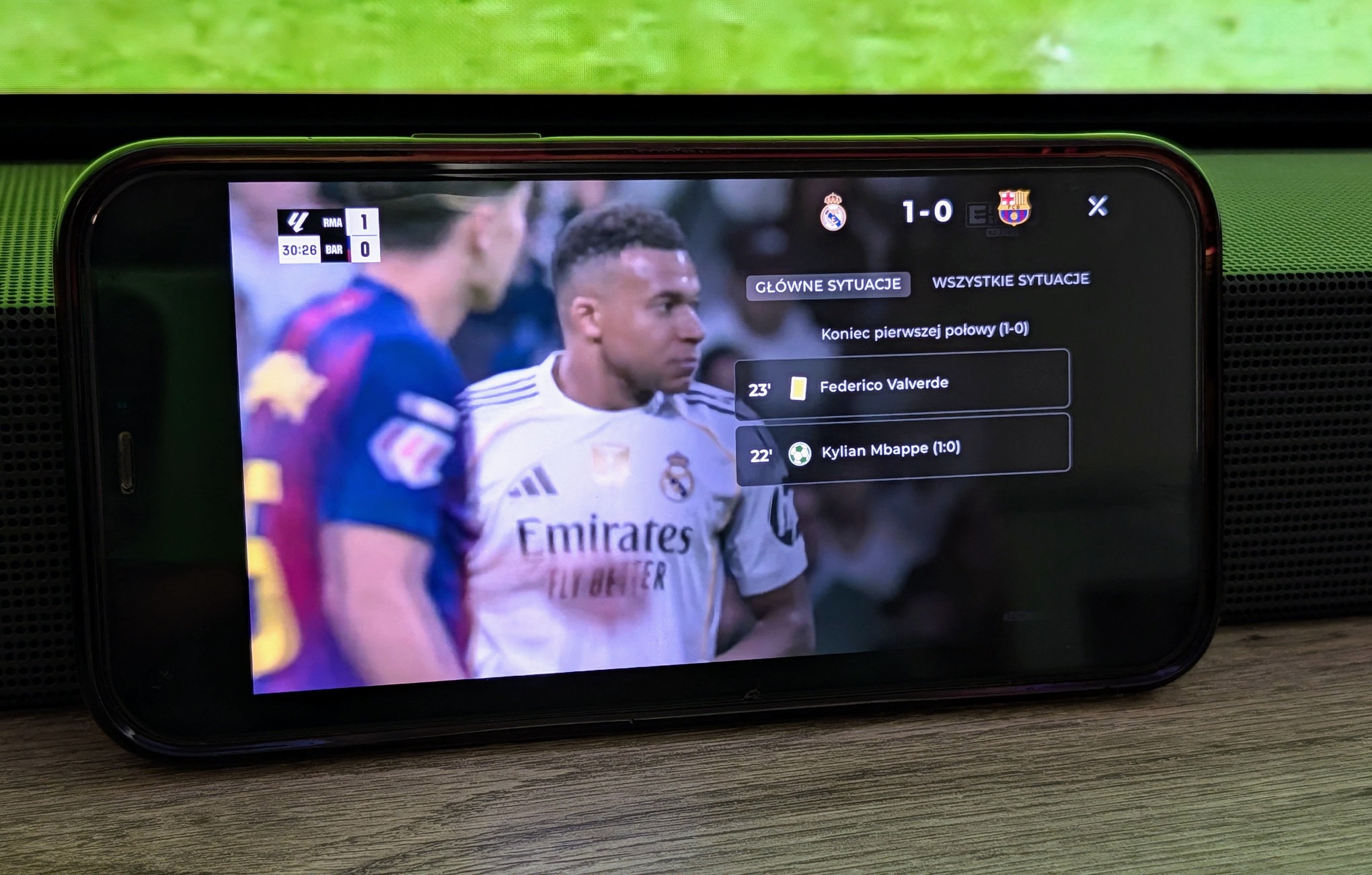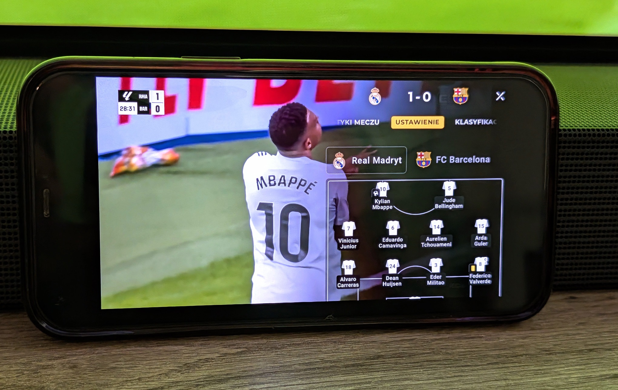 Kilka minut później Mbappe strzelił na 1:0, ale dzięki powtórce mogłem spokojnie czekać, aż sędzia pokaże, iż zawodnik Realu był na spalonym. Może wam się wydawać, iż taki model transmisji zabija uroki z gry, ale to nieprawda – dzięki niemu wiecie co się dzieje i iż nie ma powodu do paniki. Niestety kilka minut później już żadna powtórka nie mogła pomóc i Mbappe wyprowadził swój zespół na prowadzenie. euforia Realu nie trwała długo, bo zaledwie 15 minut później Fermin Lopez doprowadził do wyrównania. Tu też mogłem oglądać powtórkę, ale nie dlatego, iż miałem wątpliwości co do poprawności gola, po prostu mnie ucieszył.