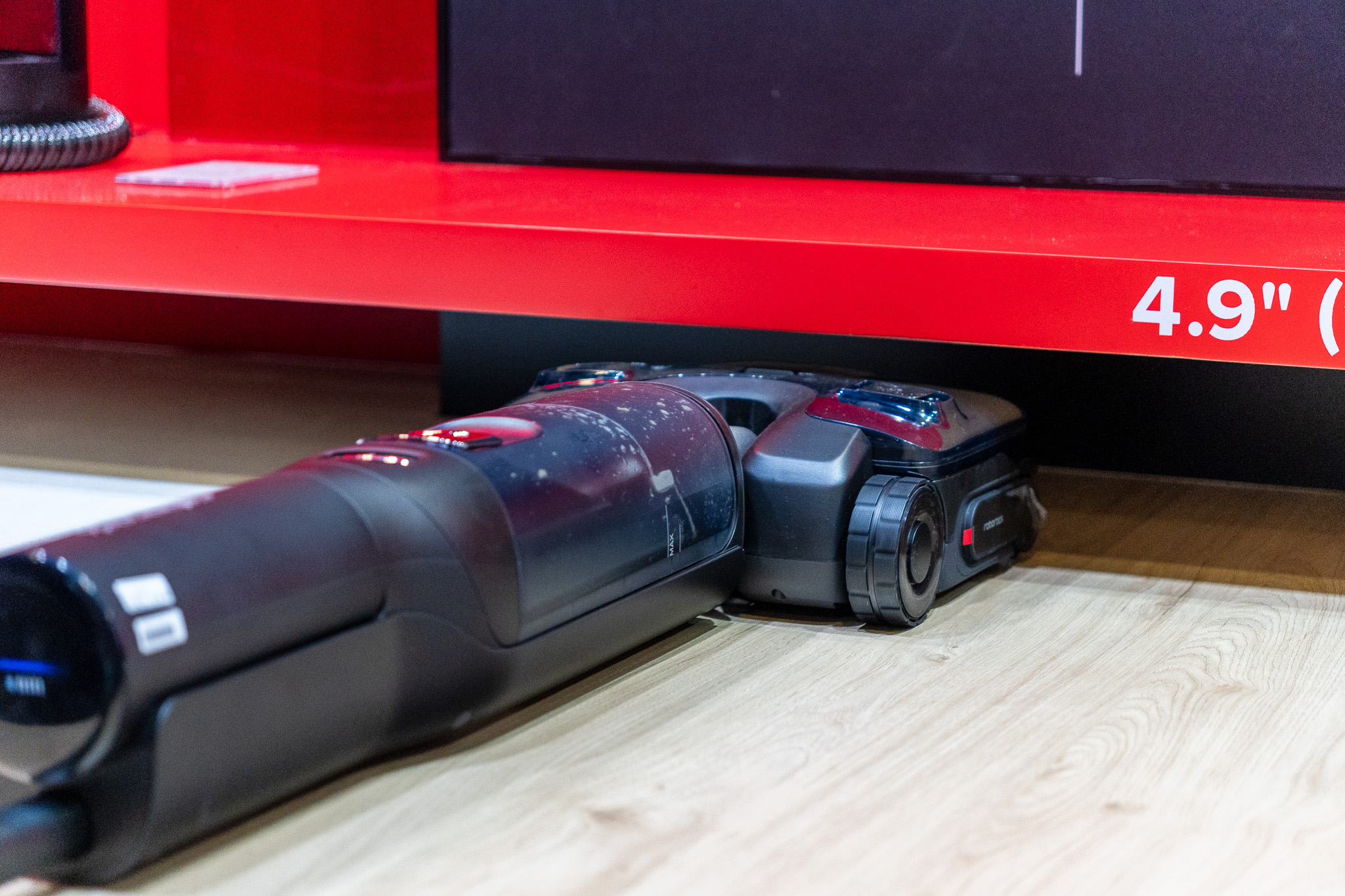 Mimo dużej mocy (ssanie 25 tys. Pa, nacisk 30 N) urządzenie prowadzi się zaskakująco lekko. Odpowiada za to system SlideTech 2.0, czyli napęd na koła wspomagający ruch zarówno w przód, jak i w tył. F25 Ace Pro rozwiązuje też problem sprzątania pod meblami – dzięki konstrukcji FlatReach 2.0 można go położyć całkowicie na płasko (do 180 stopni), zachowując pełną moc ssania. Z wysokością głowicy wynoszącą zaledwie 12,5 cm odkurzacz wjedzie pod większość łóżek i kanap, nie tracąc przy tym kontaktu z podłożem.